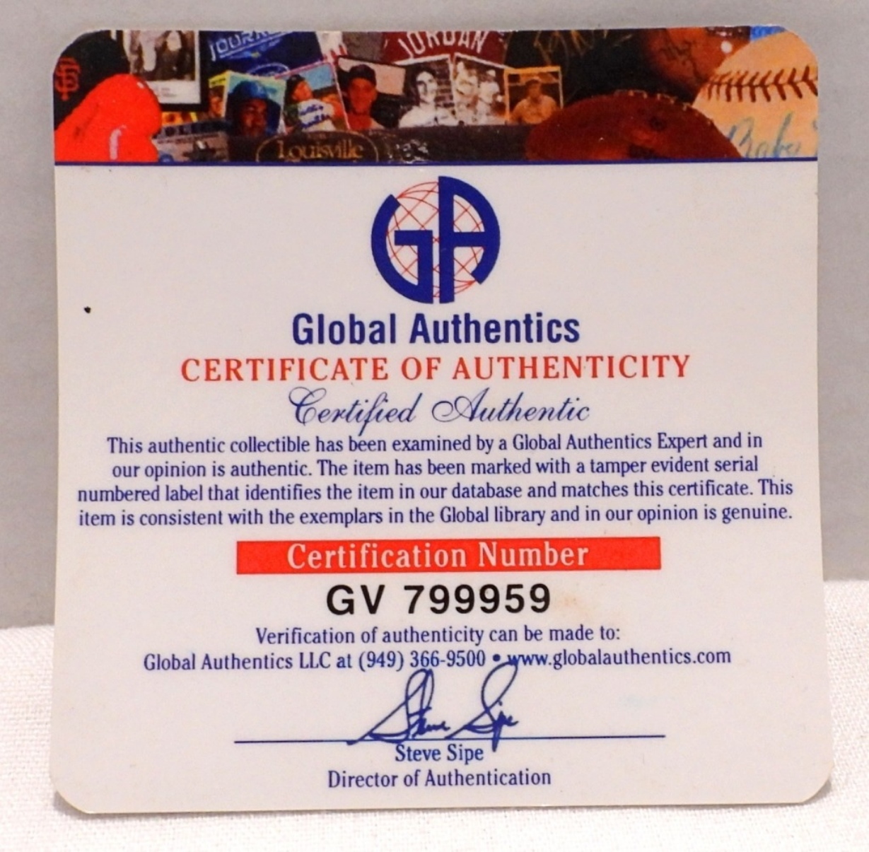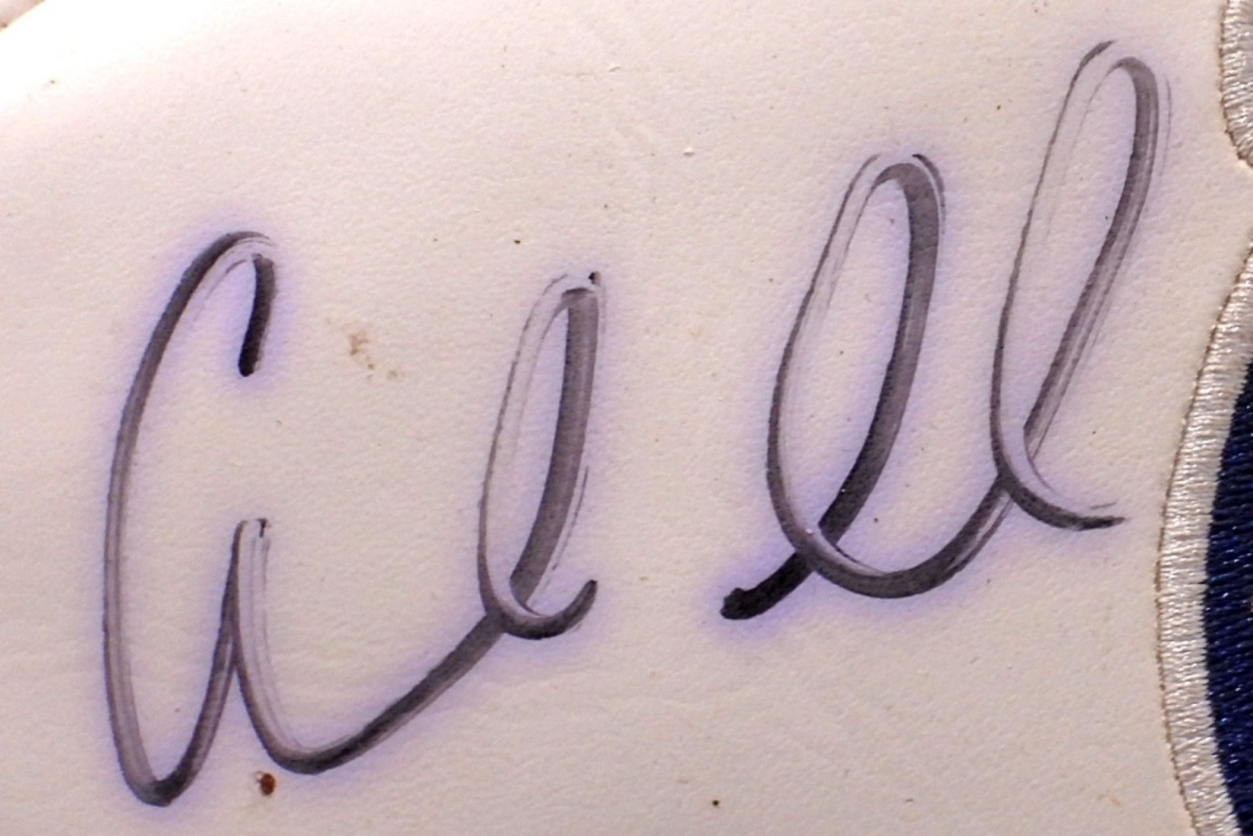 Andrew Luck signed Colts football with championships listed on ball, stand with name plaque, COA #gv799959 by global authentic, ball needs some air not authenticated