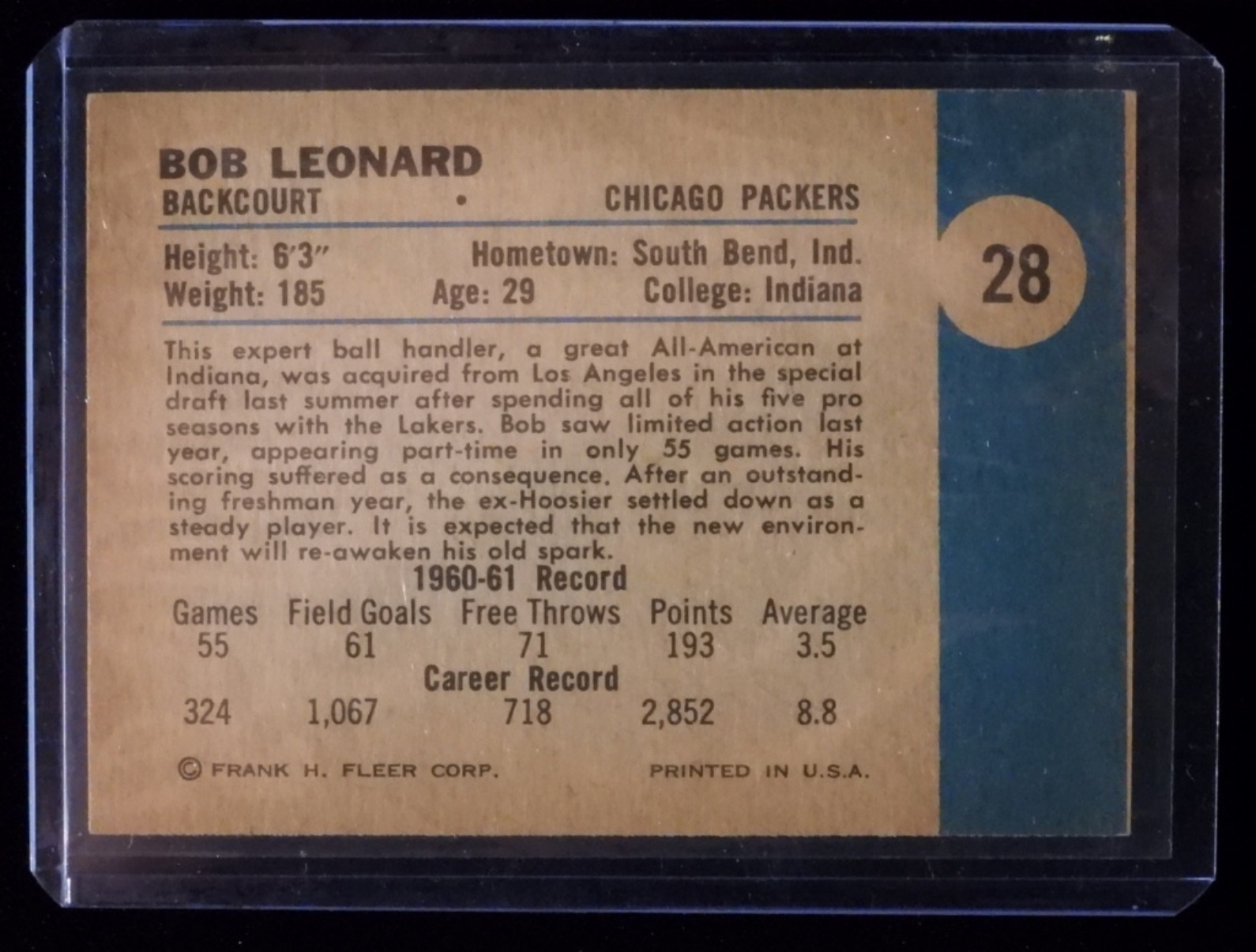 Bob Leonard Fleer #28 VG-EX