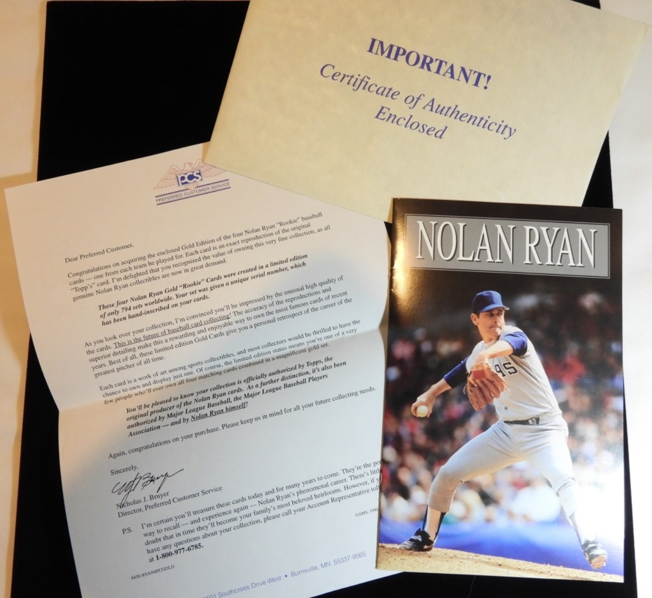 These four Nolan Ryan “Rookie” cards were created in a limited edition of only 794 sets worldwide. This lot does come with a small booklet of Nolan Ryan as well as a letter of authentication
