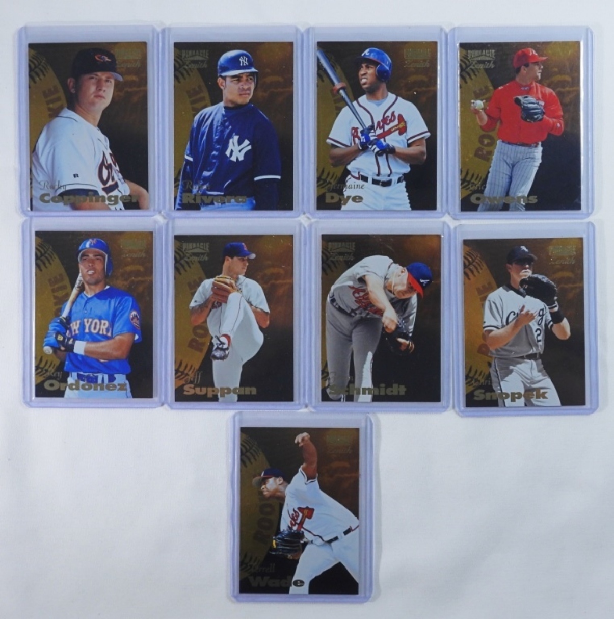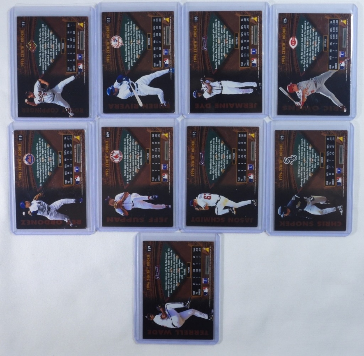 9 Pinnacle Zenith cards with different players on each, some of which include Rocky Coppinger, Ruben Rivera, Jermaine Dye, and more.