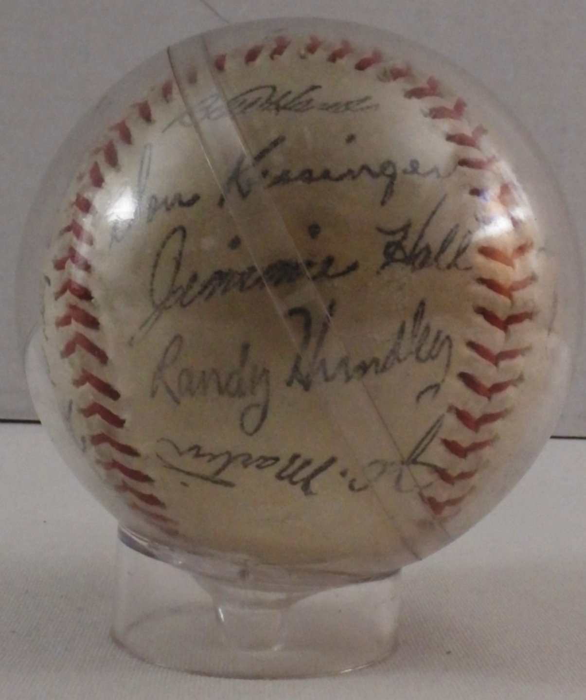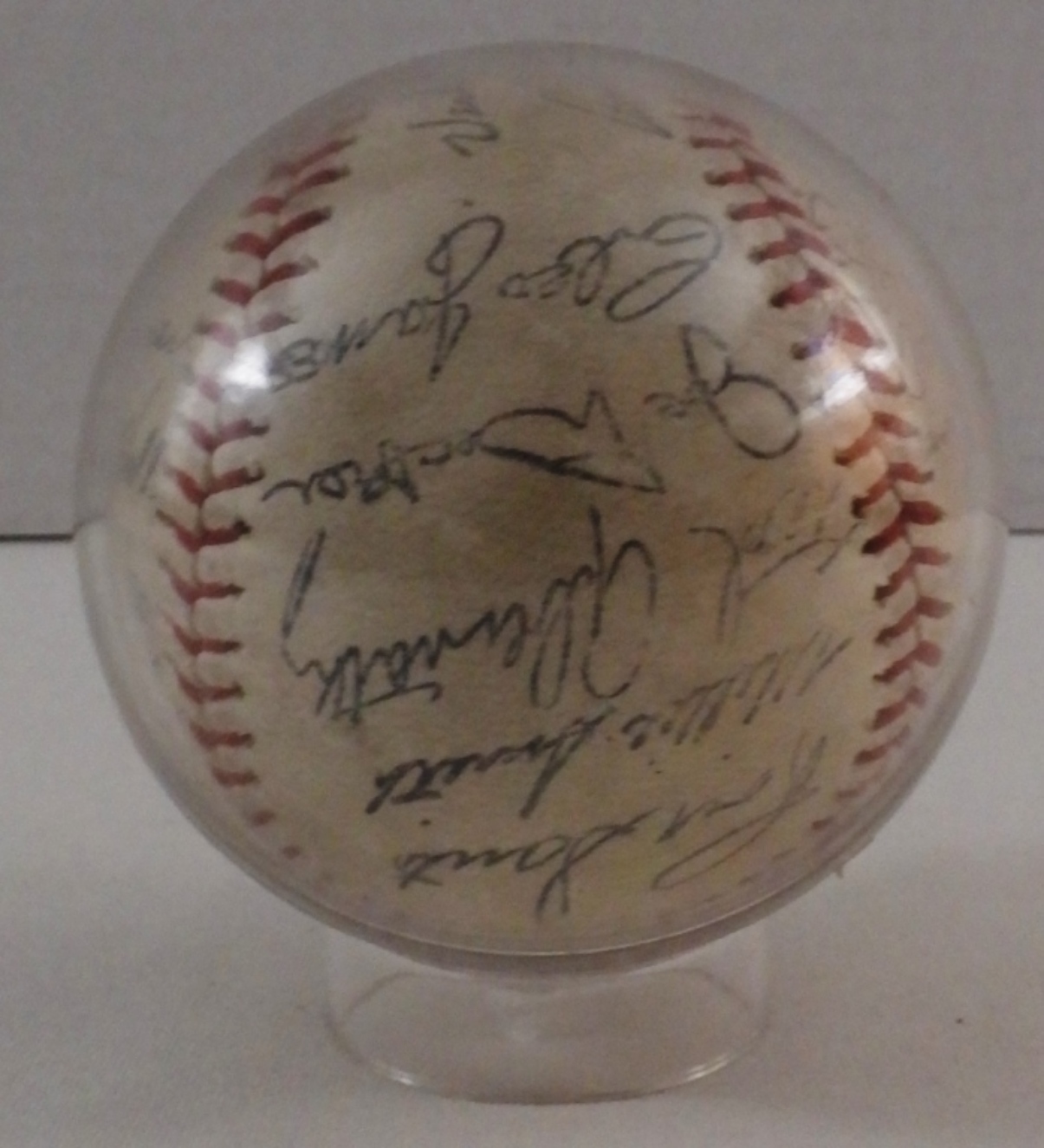 NO COA. Chicago Cubs. It appears to be signed by Jim Hickman, Johnny Callison, Billy Williams, and more. In ball case.