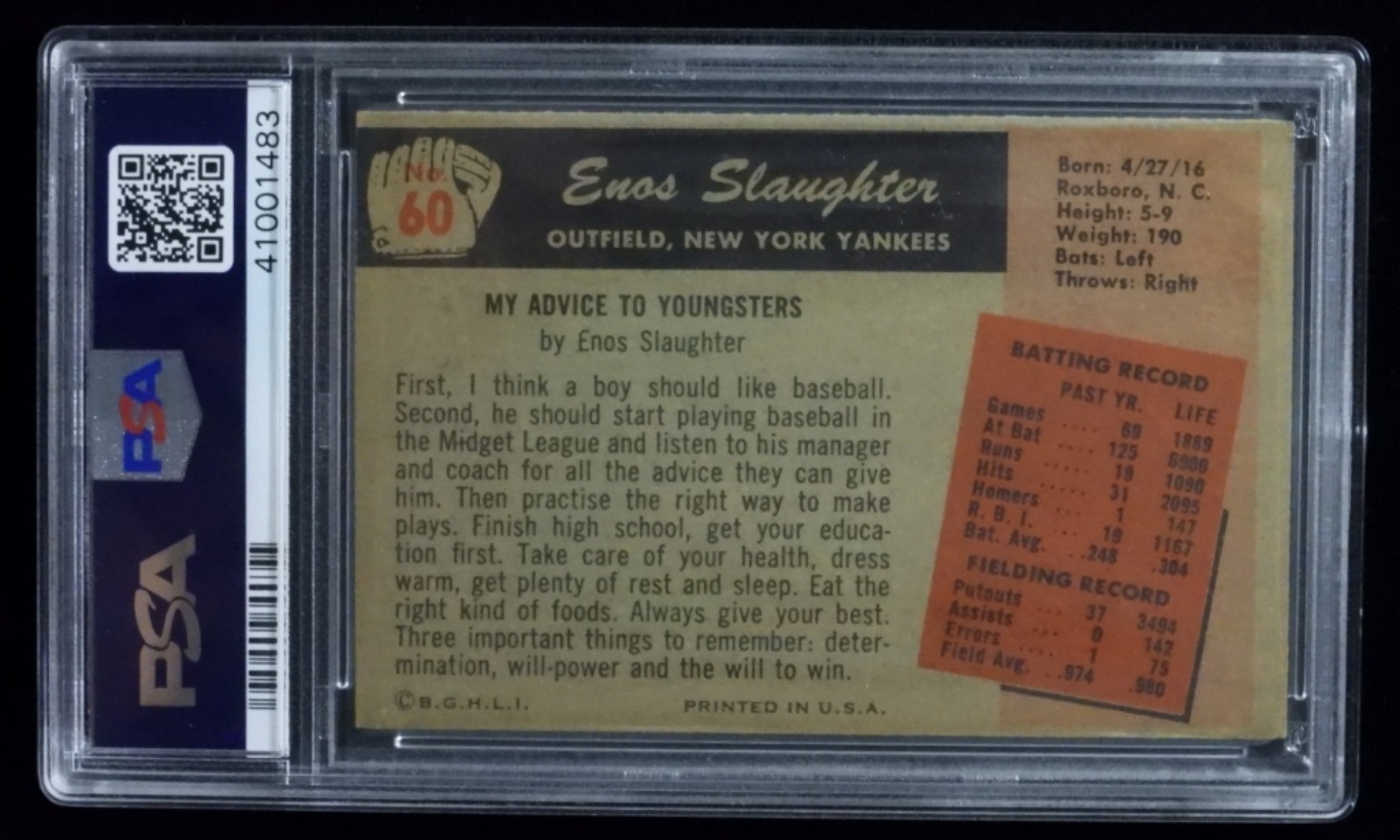 PSA Bowman Enos Slaughter #60 EX-MT 6 (41001483)