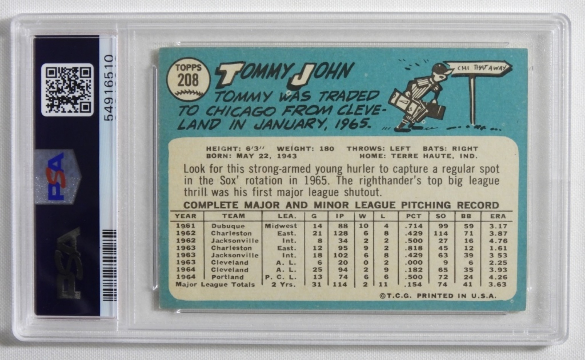 1965 TOPPS Tommy John #208 EX-MT 6 (54916510)