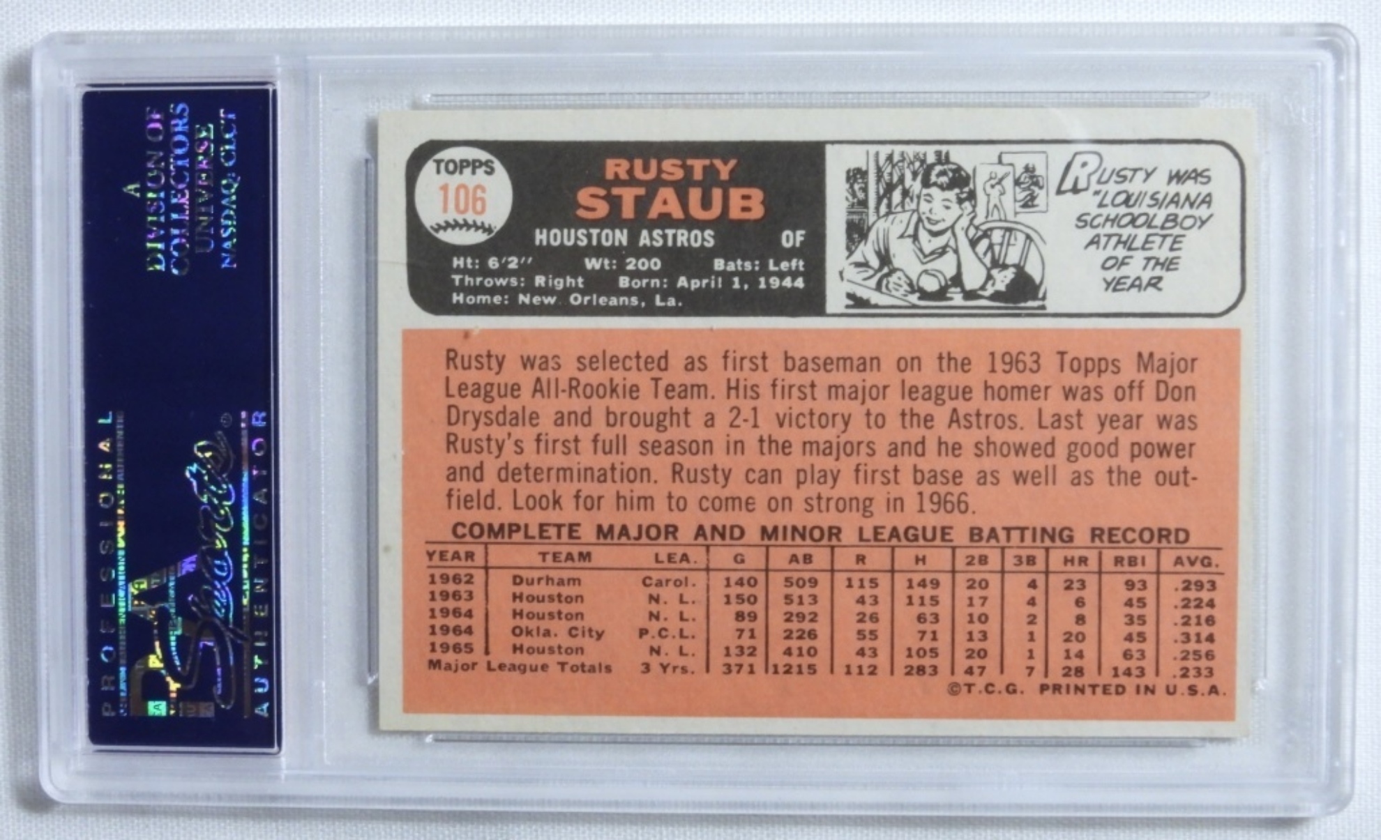 PSA 1966 TOPPS Rusty Staub #106 NM 7 (24971092)