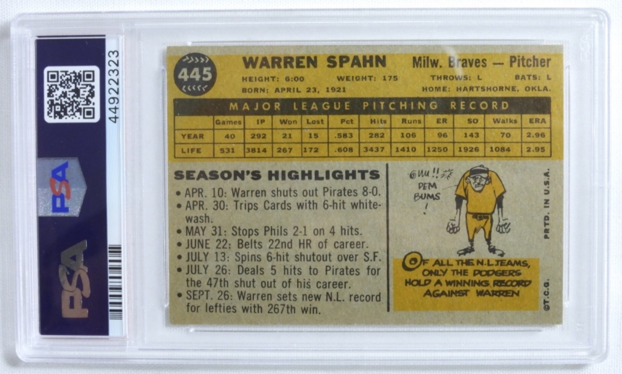 PSA 1960 TOPPS Warren Spahn #445 NM 7 (44922323)