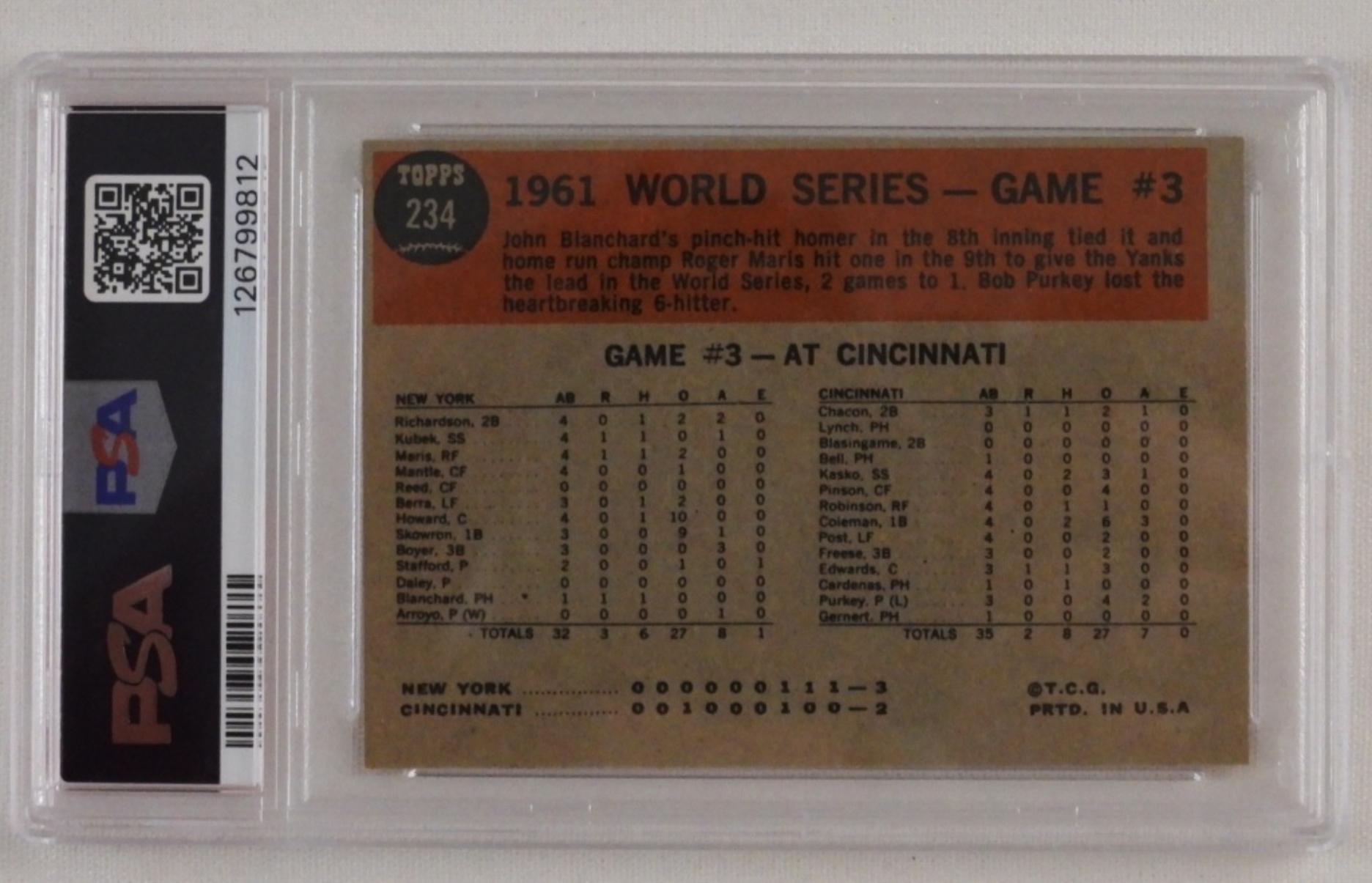 PSA 6 1962 TOPPS World Series Game 3 Maris Wins it in the 9th
