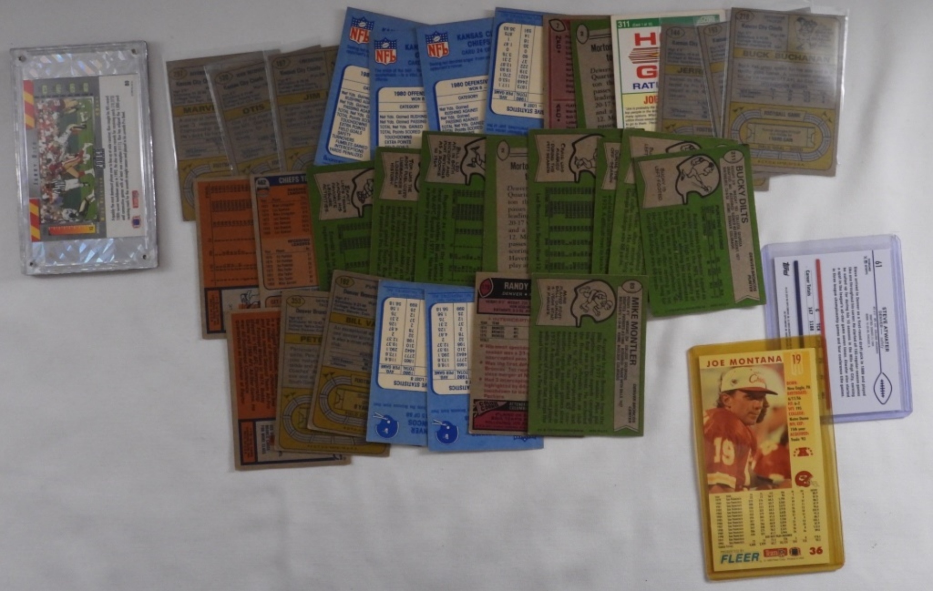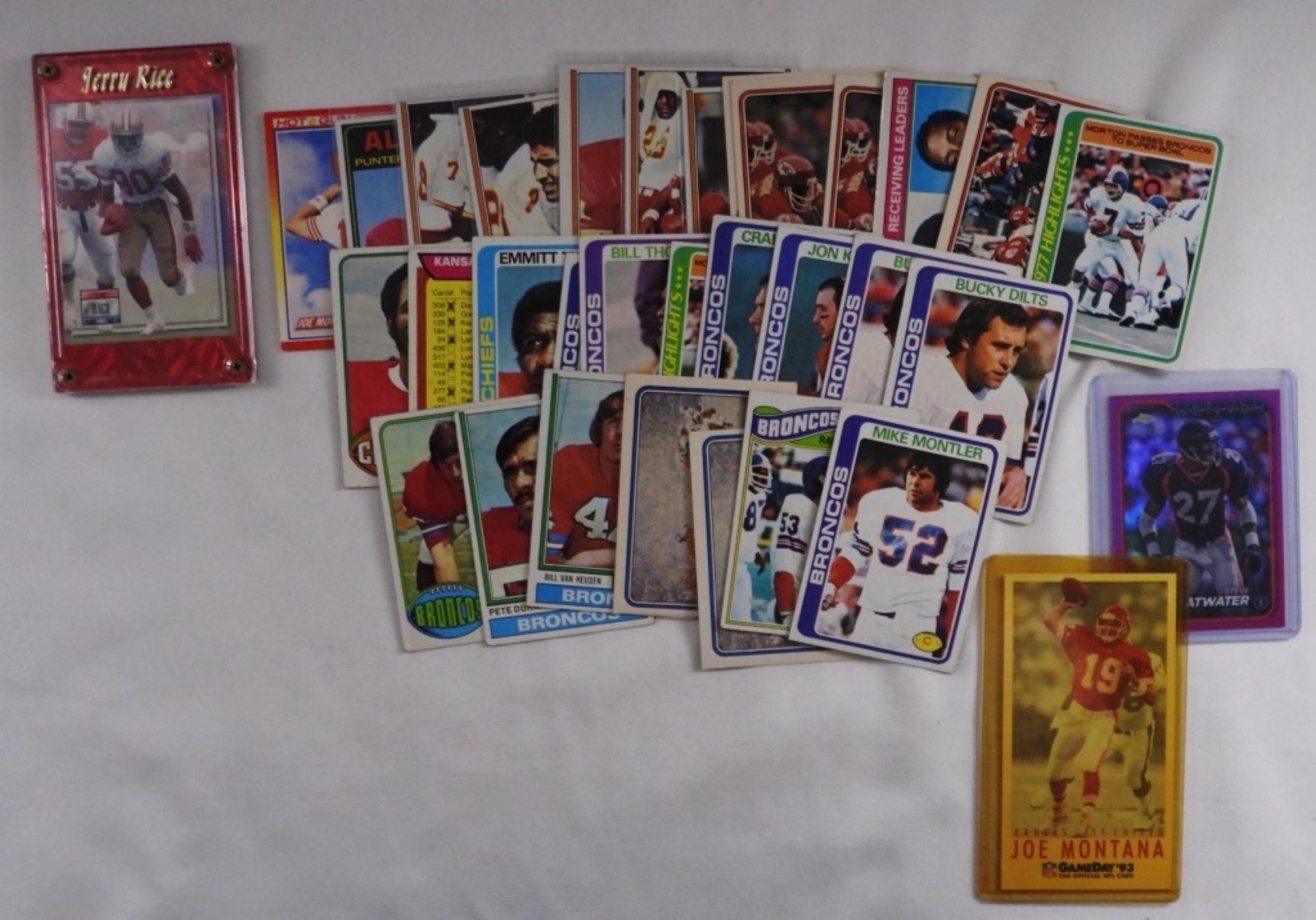 Mixed Conditions. May have duplicates. Mixed years. Including Joe Montana, Jerrel Wilson, Jerry Rice, Bill Thompson, Tom Jackson, John Keyworth, and more