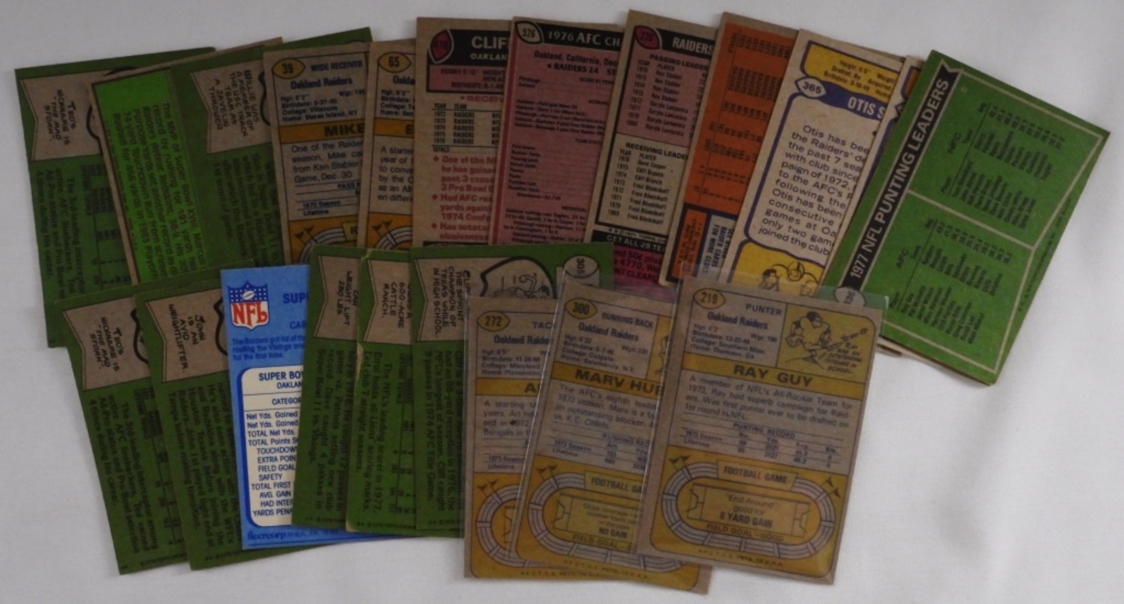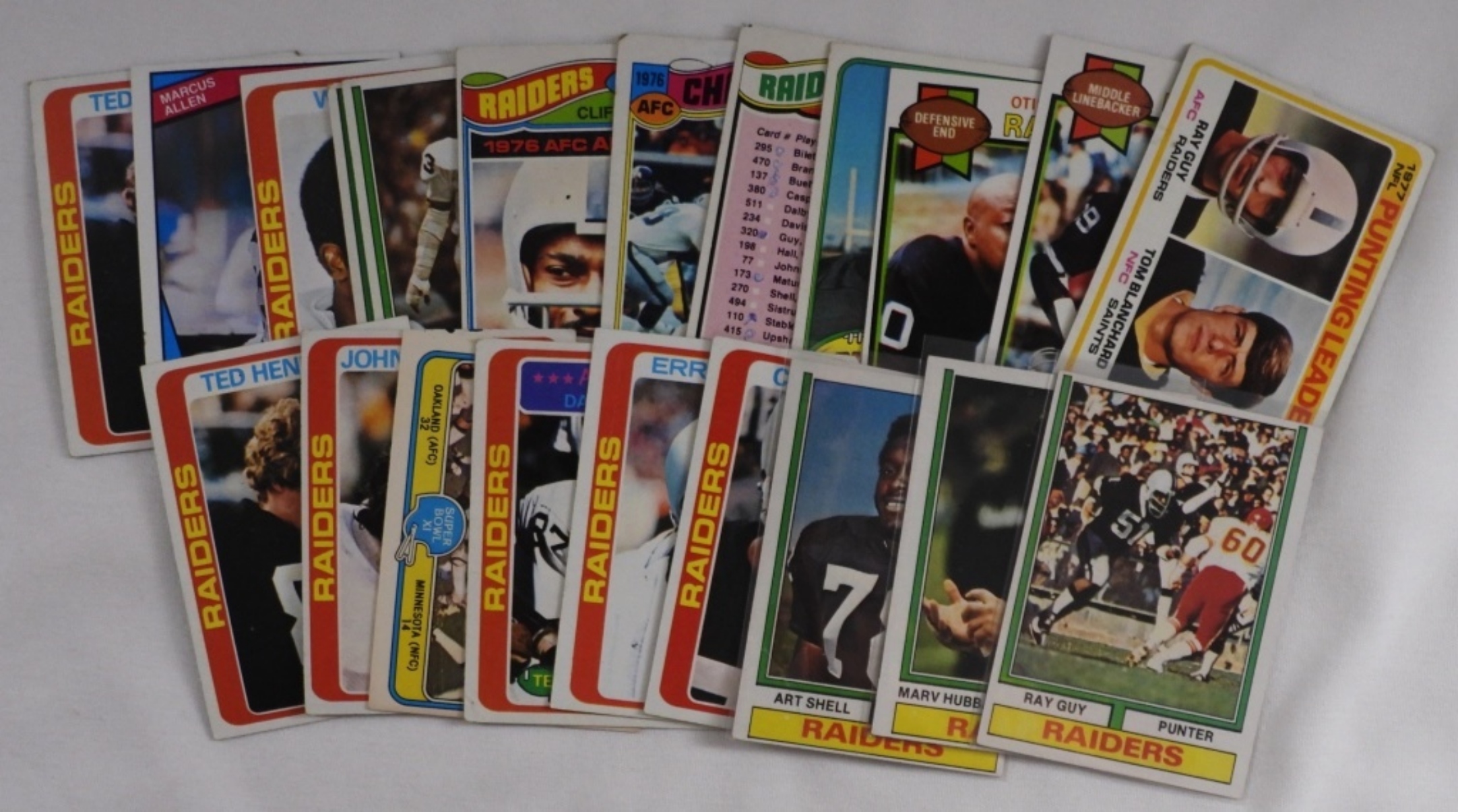 Mixed Conditions. May have duplicates. Mixed years. Including Ray Guy, Marv Hubbard, Art Shell, Marcus Allen, and more