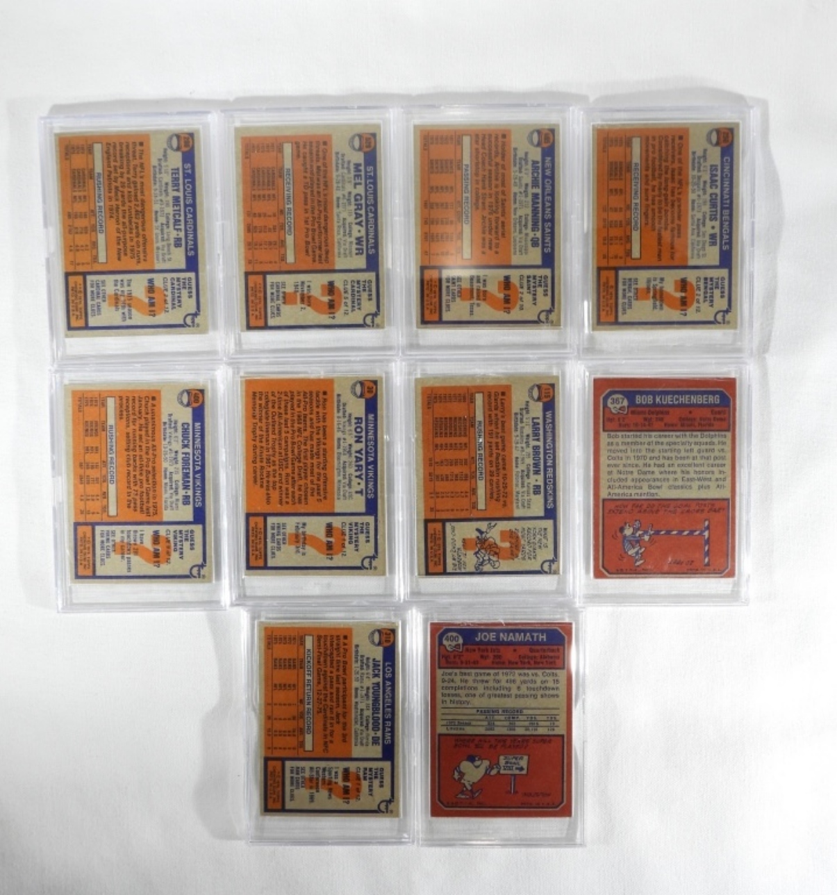 2 1976 Vikings, 2 1976 Cardinals, 1 1976 Redskins, 1 1976 Saints, 1 Rams 1976, 1 Bengals 1976, 1 1973 Jets, 1 1973 Dolphins, all in very good condition
