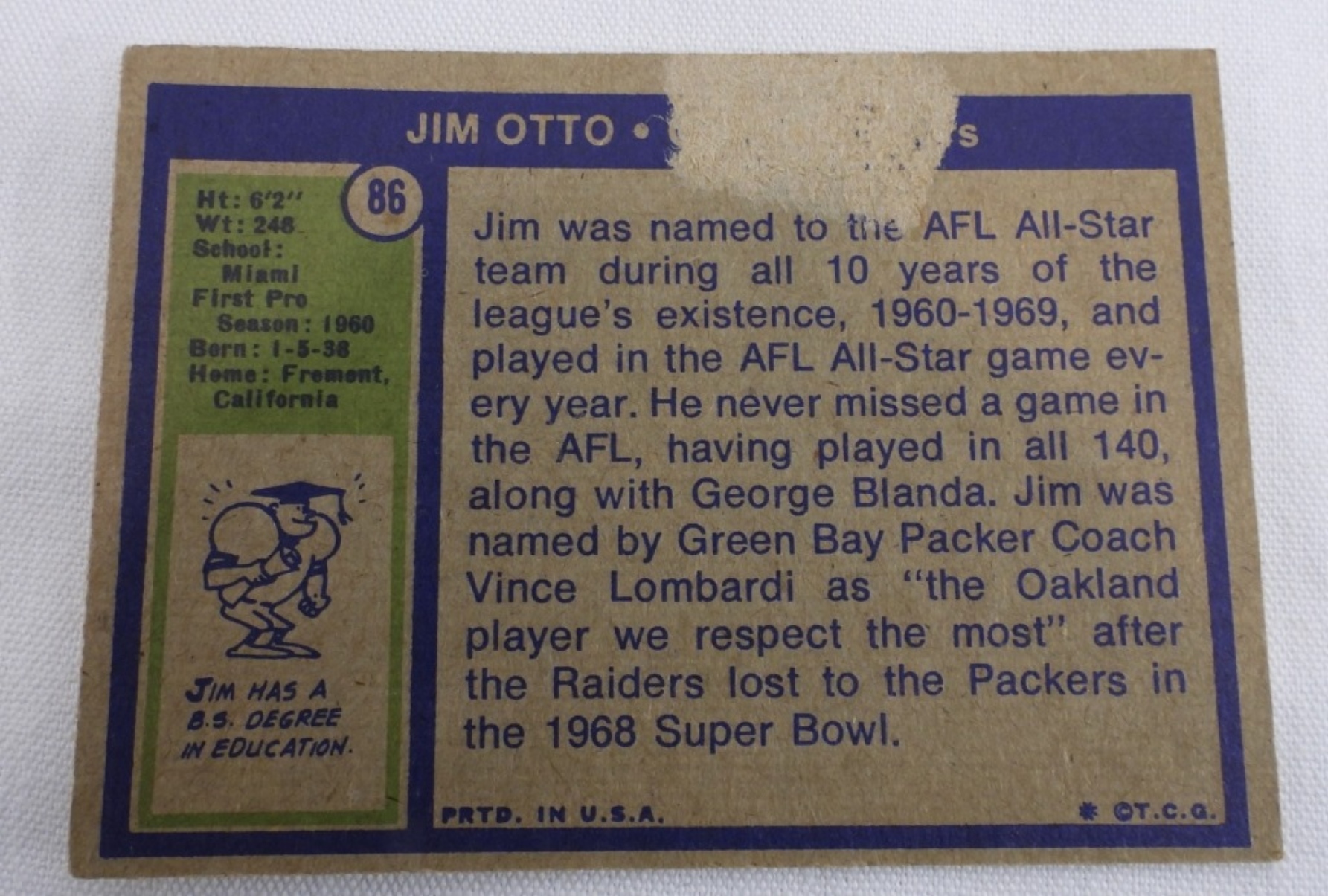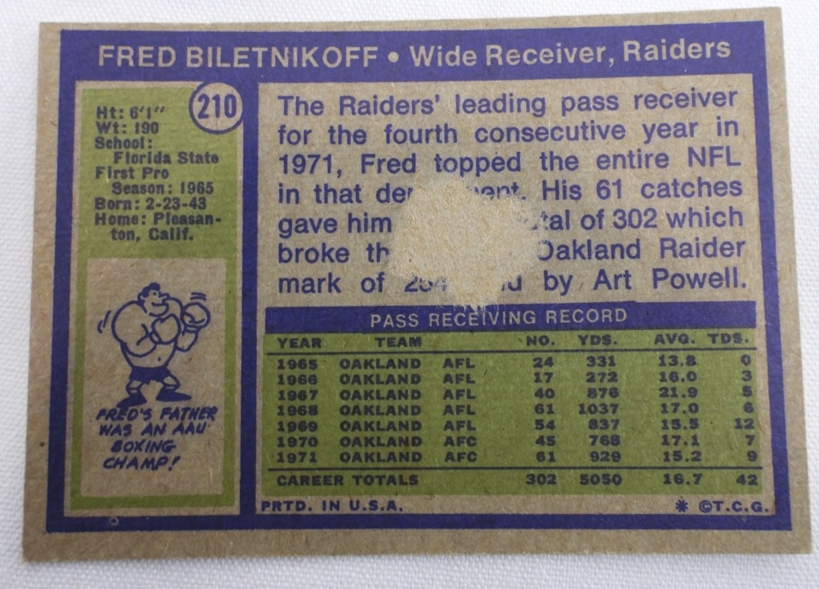 Great shape. Fred Biletnikoff is missing some words on the back