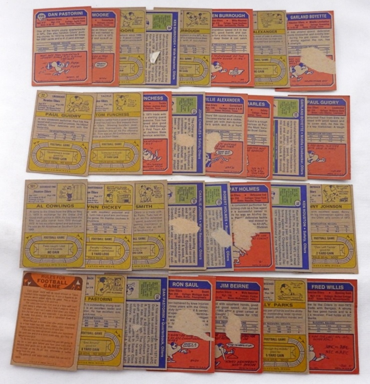 mixed condition cards, a few have some damage on the backs, Lynn Dickey and Charlie Joiner rookie cards