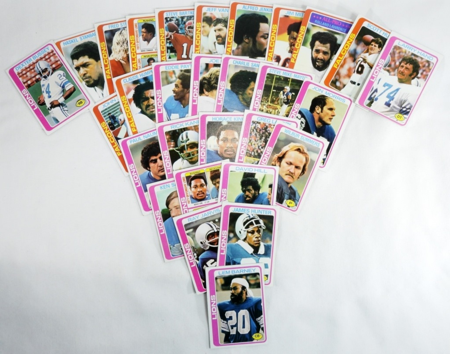 very good condition, 18 Detroit Lions cards, 11 Atlanta Falcons cards