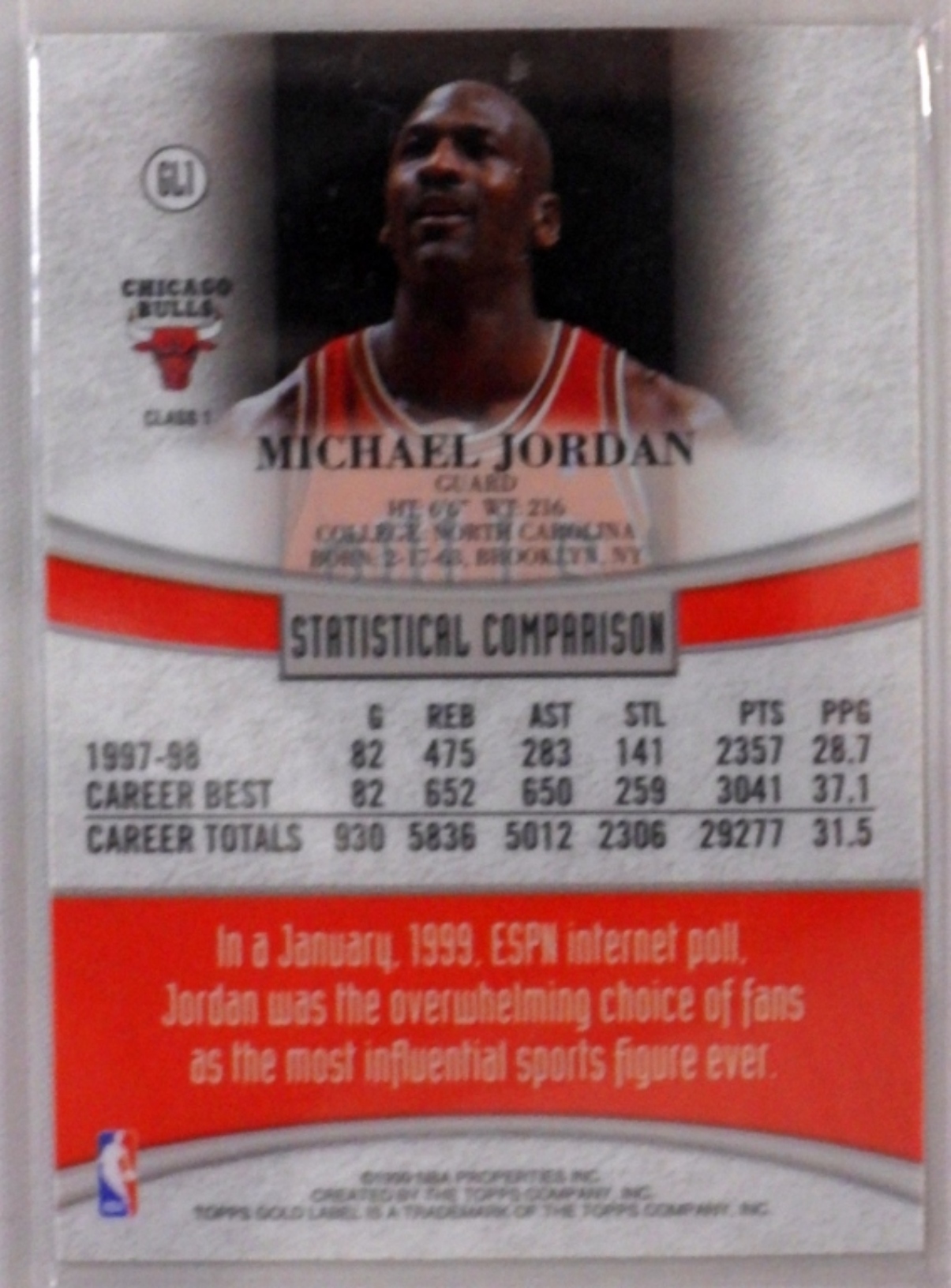 Michael Jordan TOPPS Gold Label 1999 card NM