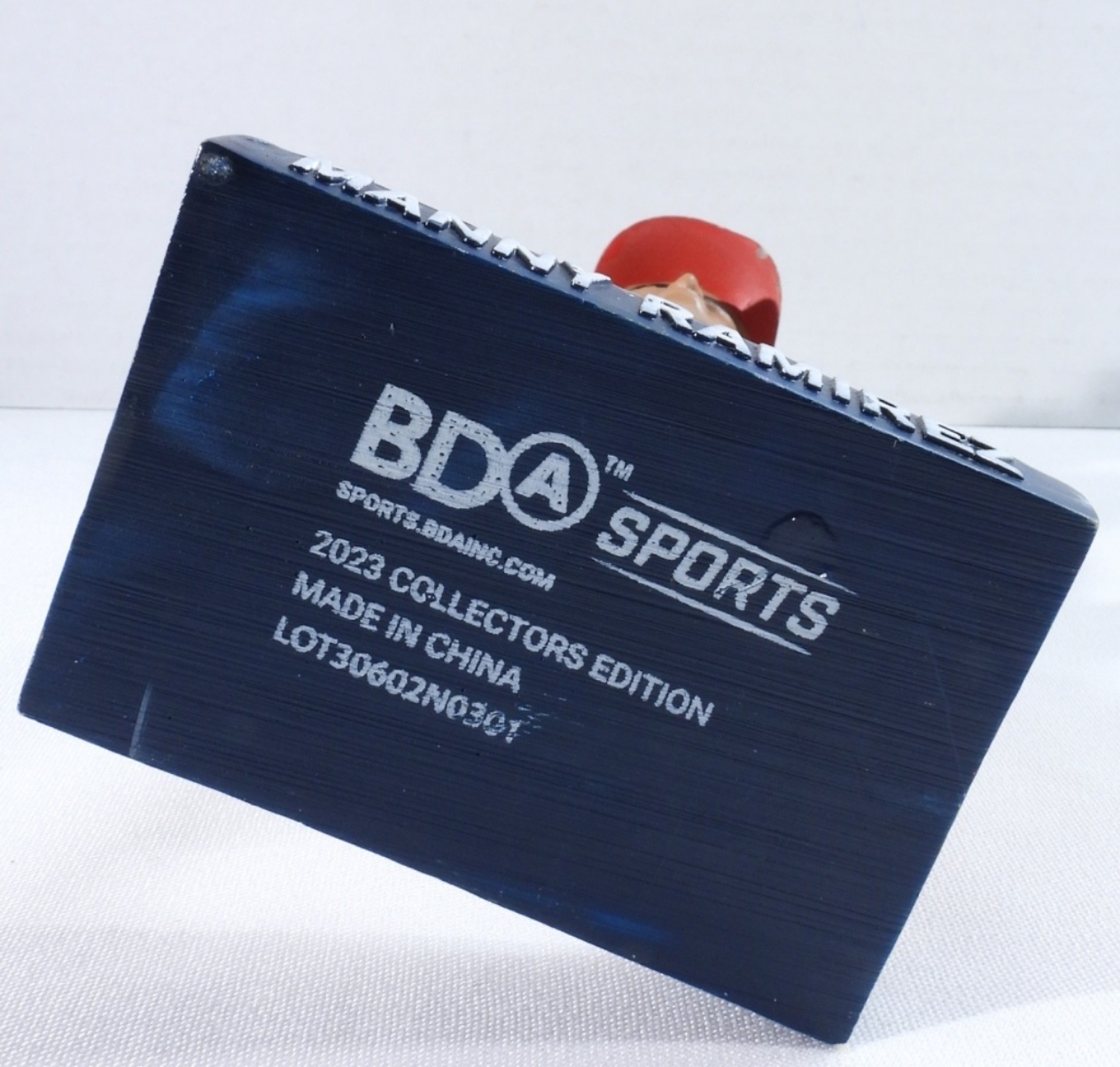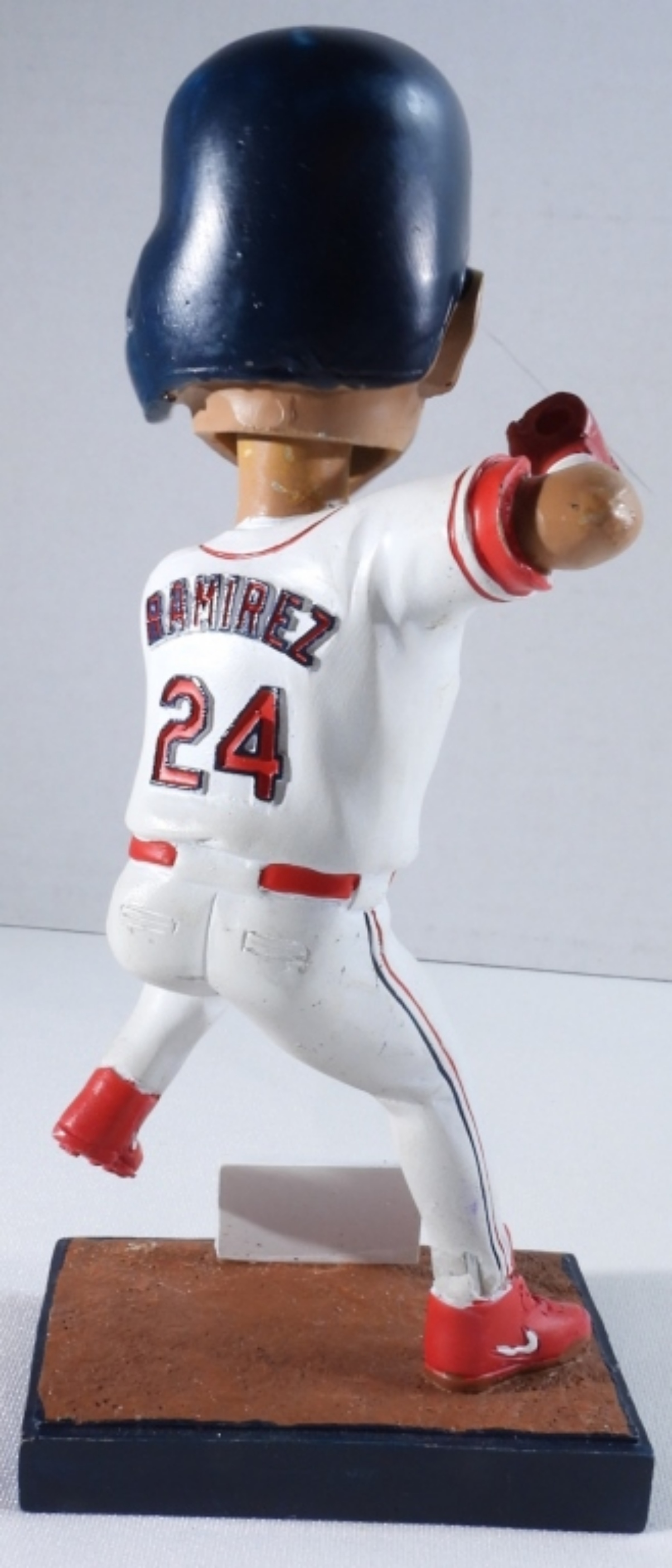 Manny Ramirez 2023 bobble head, Cleveland Hall of Fame, missing the baseball bat.