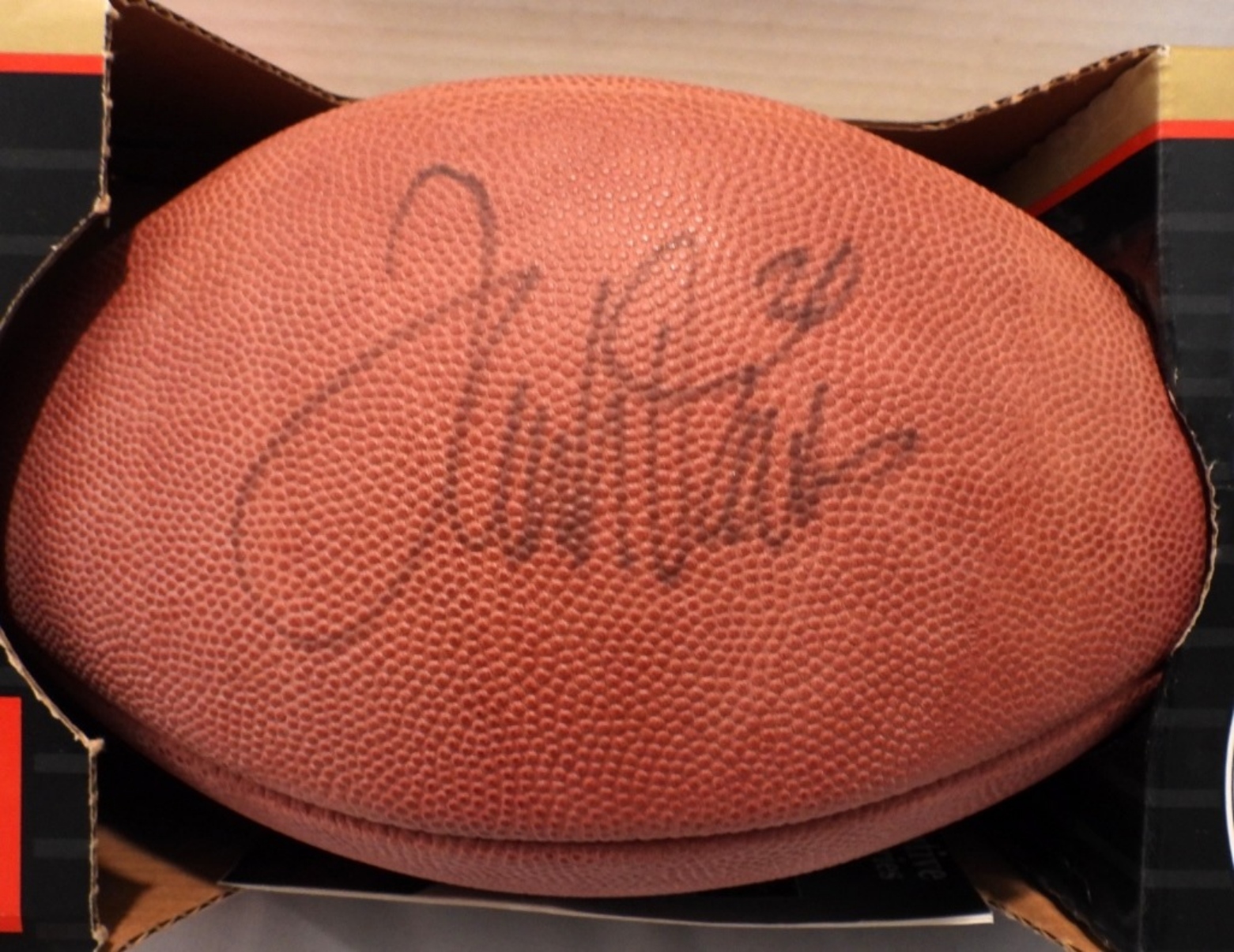 Ultimate Sports Direct, COA, 1999 signed Wilson NFL football in box, with a photo of Terrell Davis signing