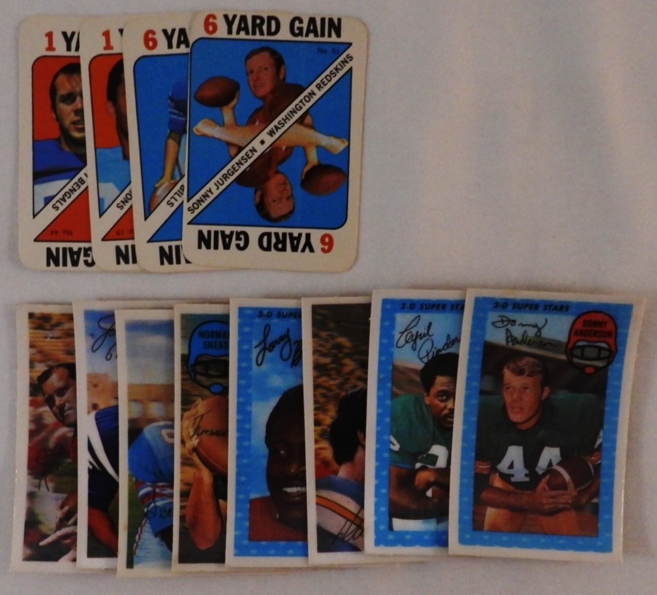 8 Kellogg’s 3-D Xograph cards, and 4 TOPPS Yard Gain cards, conditions vary