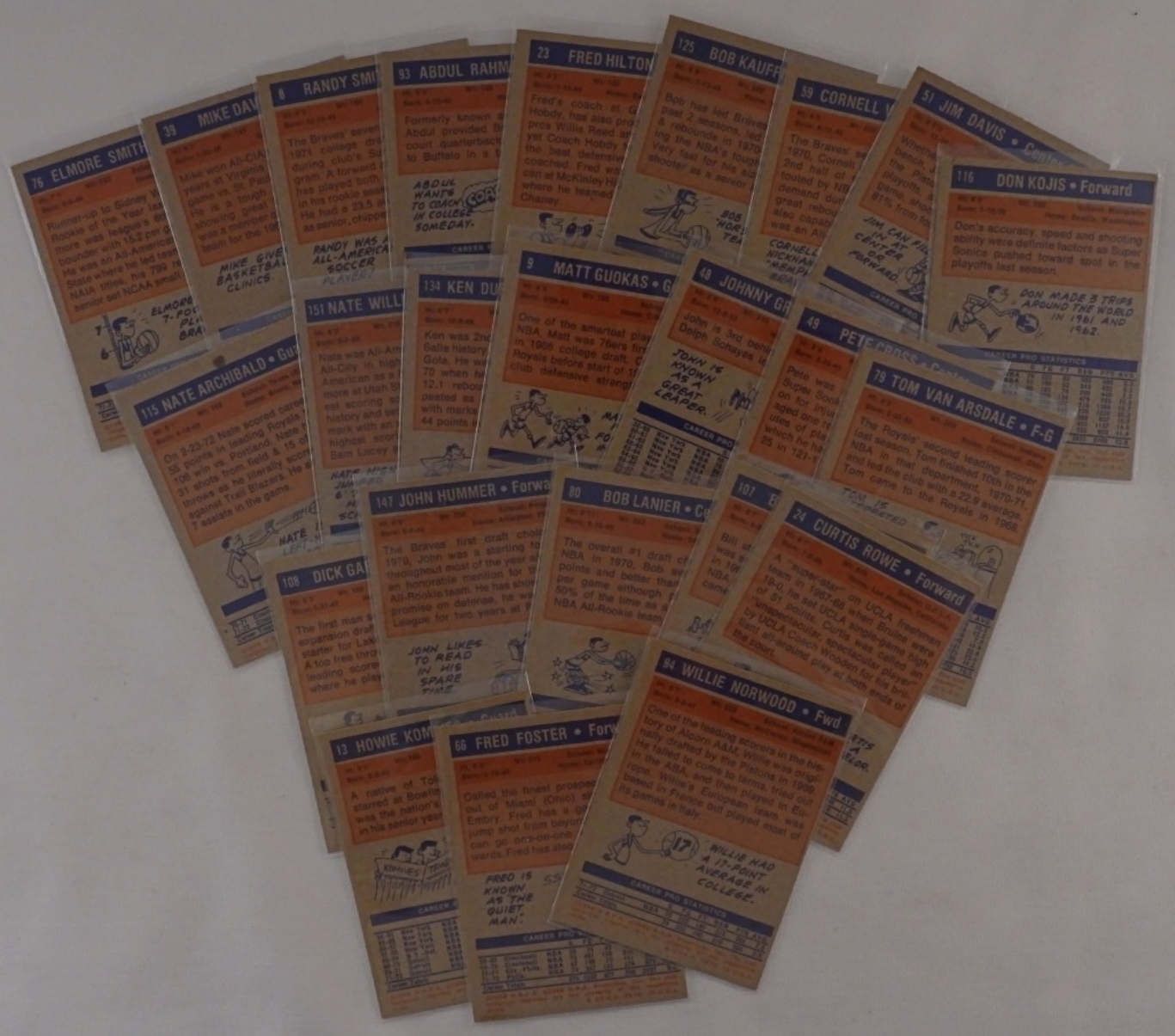 TOPPS 1972-73 Basketball cards, the Braves, Pistons, and Kings, conditions vary