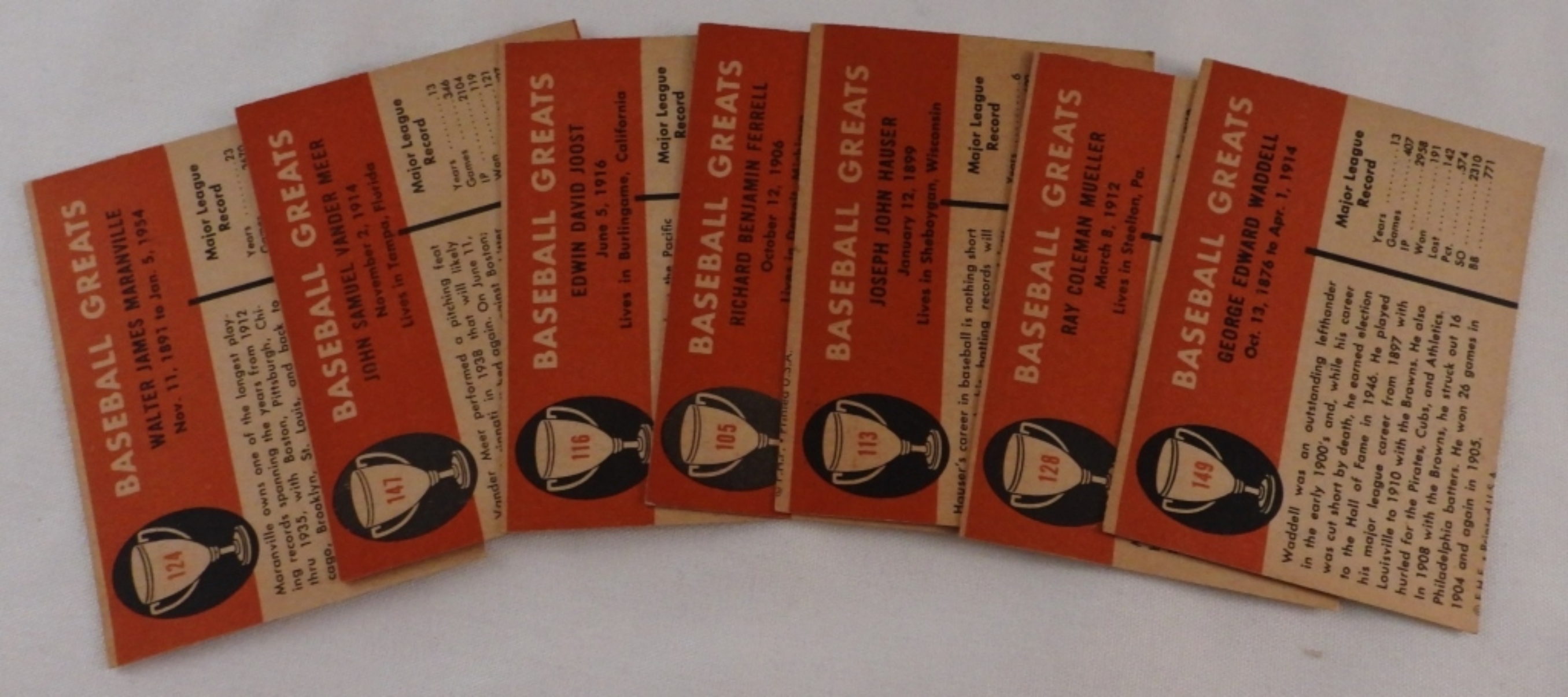 Including Rick Ferrell, Johnny Vander Meer, Eddie Joost, Rabbit Maranville, Ray Mueller, Rube Waddell, and Joe Hauser