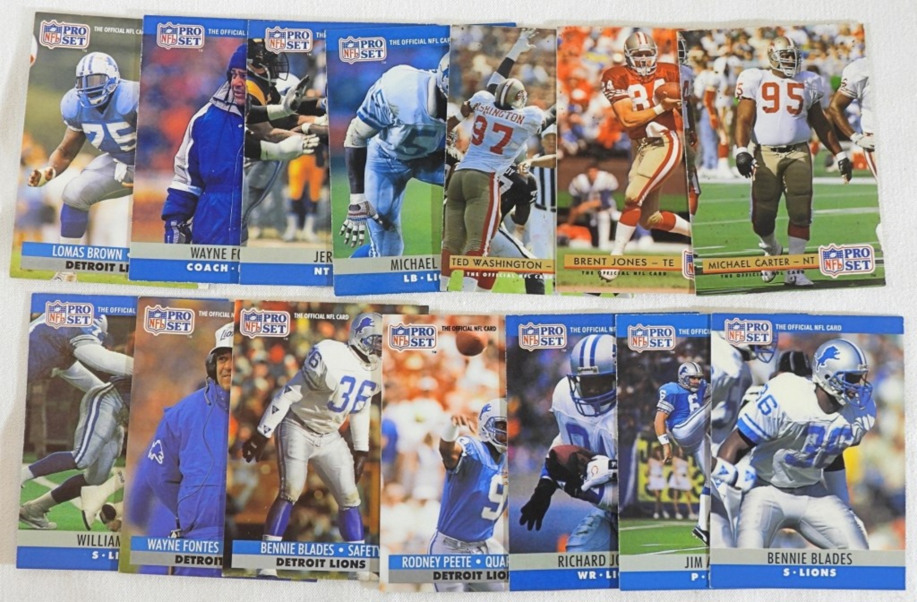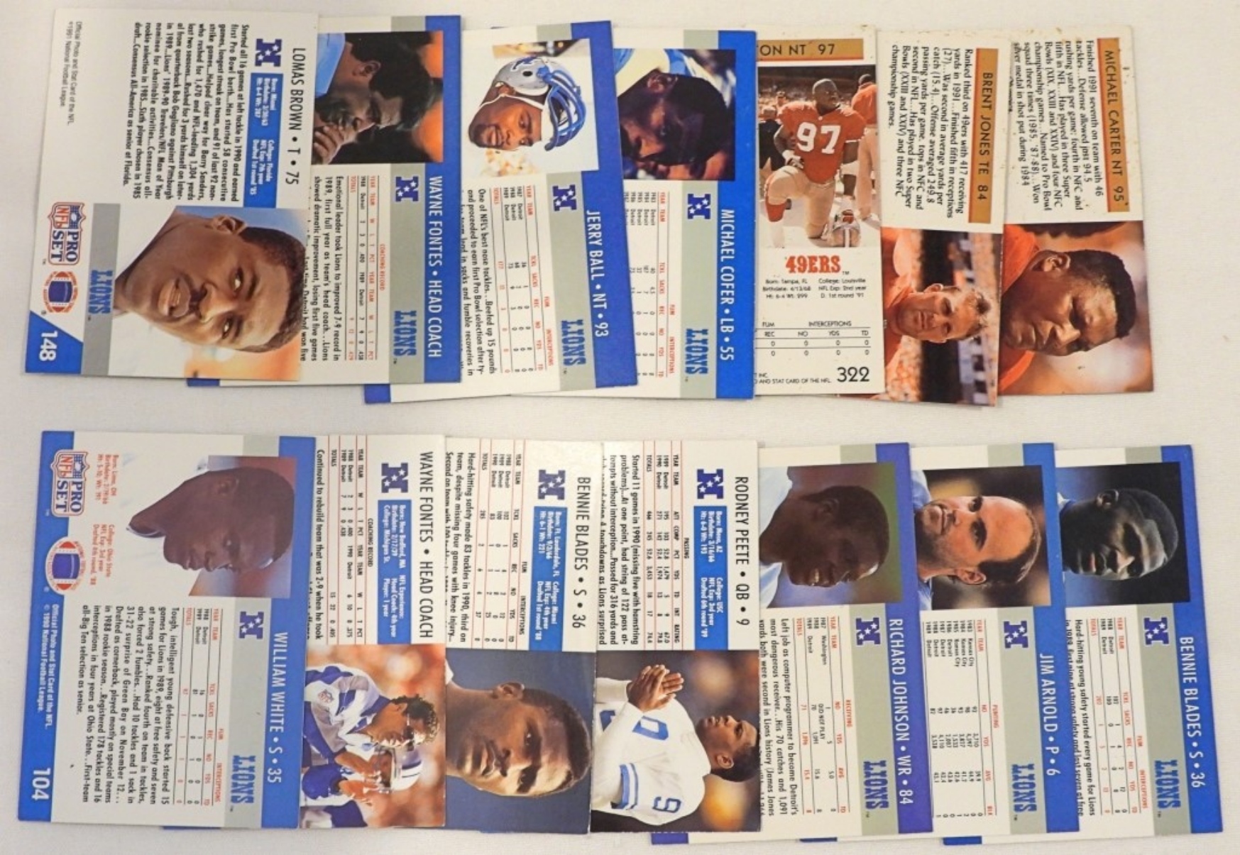 11 Detroit Lions cards, 4 from 1991 and 7 from 1990, 3 49ers from 1992, good condition