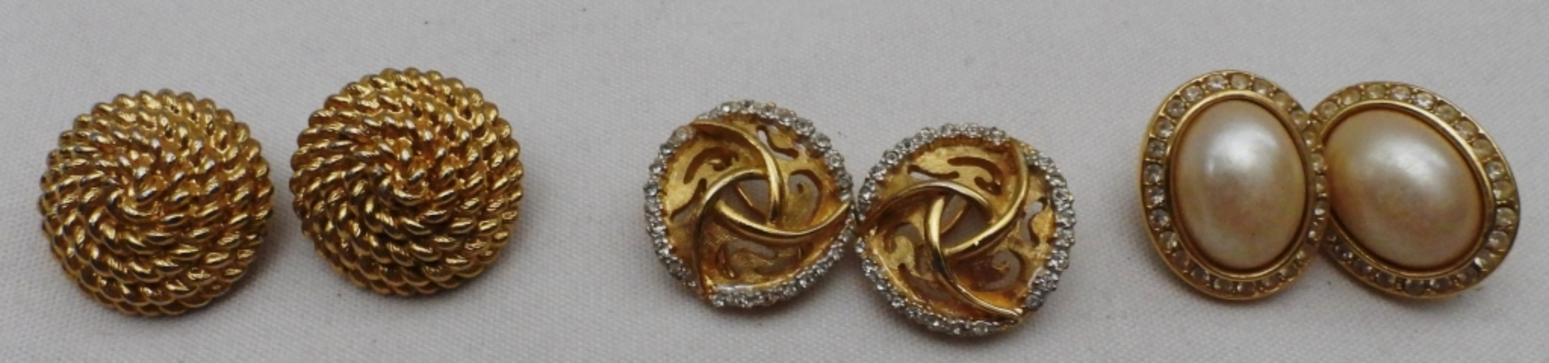 Two are posts and one pair are clip-ons. Rhinestones and faux pearls
