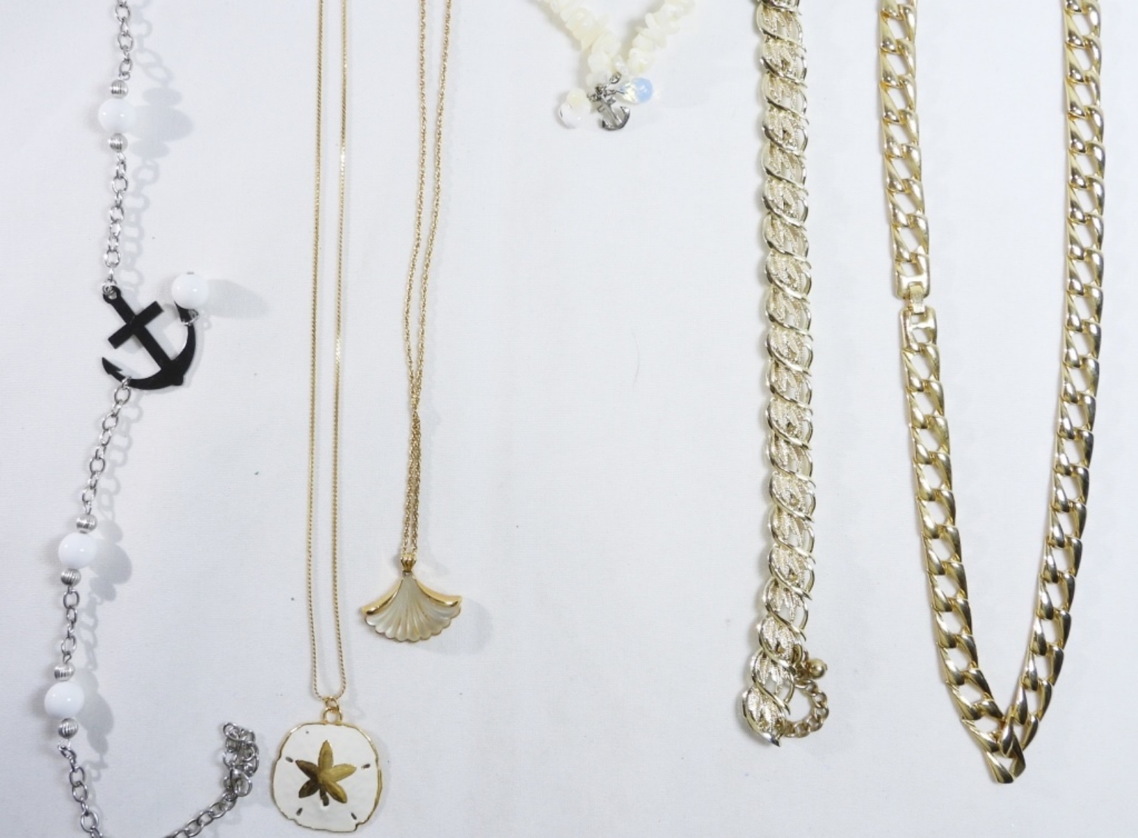 5 Gold and ocean themes necklaces such as an anchor, sand dollar charm and1 anchor bracelet