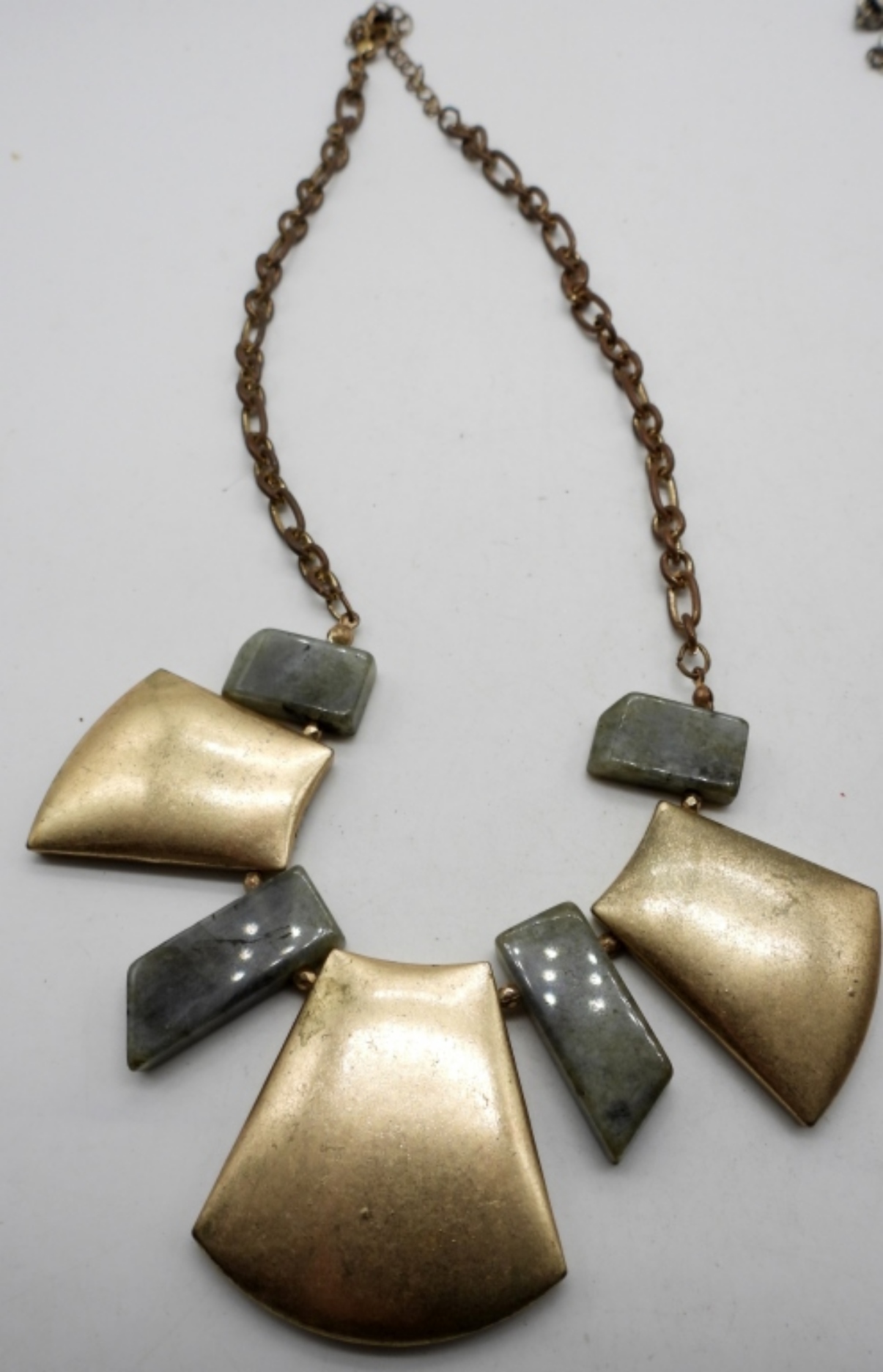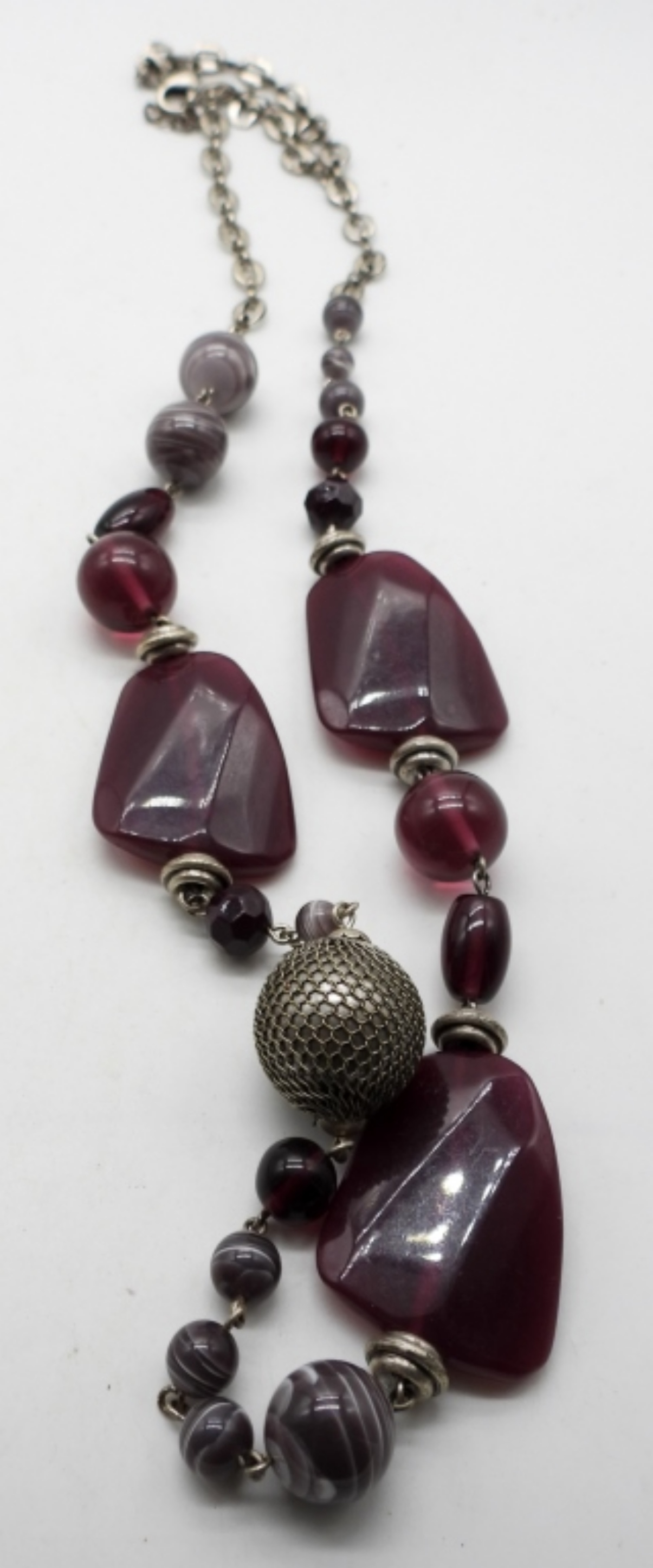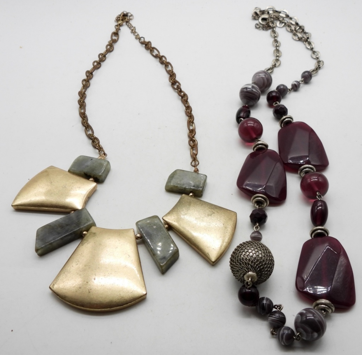 1 has purple beads. The other has sea-foam green and gold tone beads