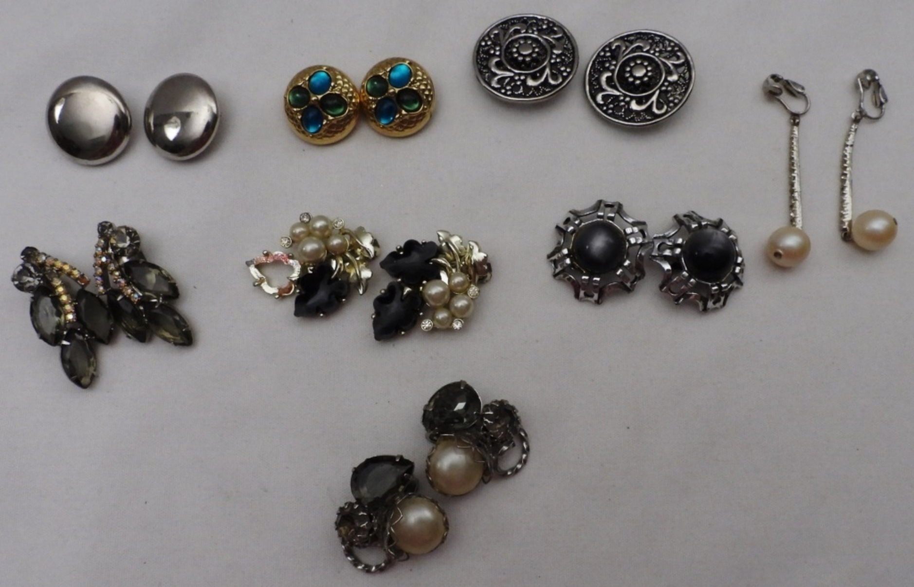 8 pairs earrings, clip-ons, different styles and tones