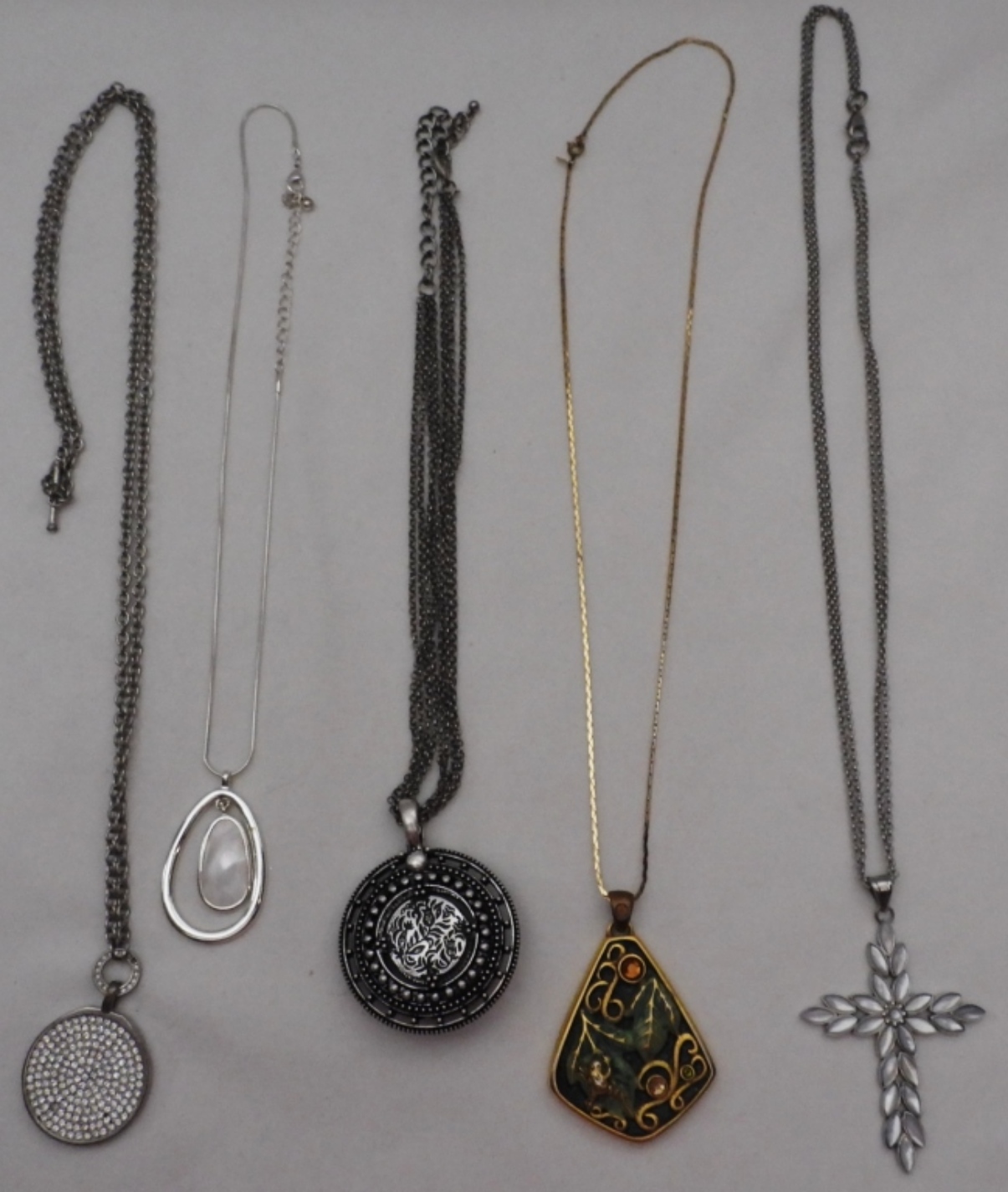 silver and -gold tones, large pendants, different lengths