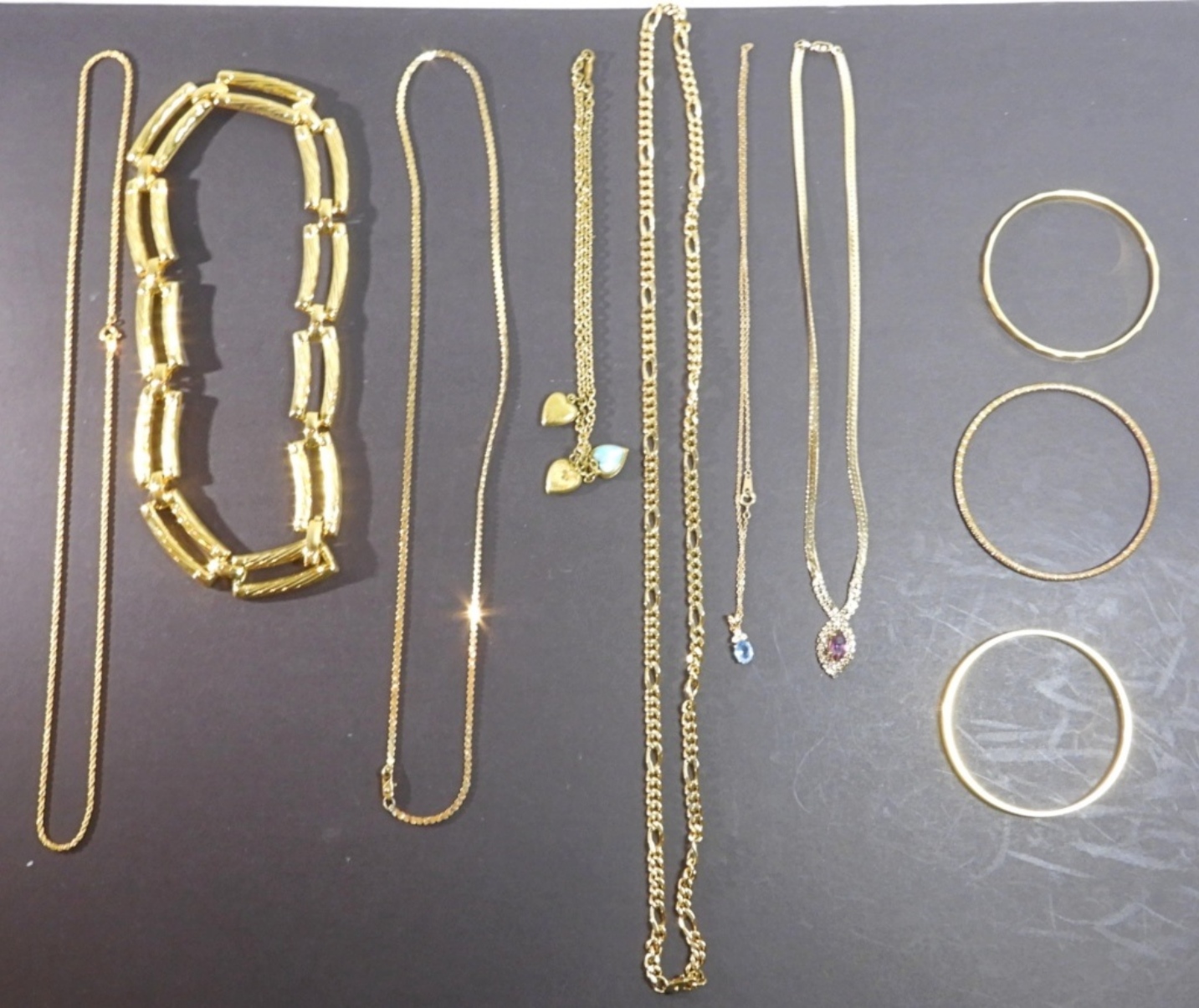7 necklaces, 3 bangles, necklace lengths from 14″ to 30″