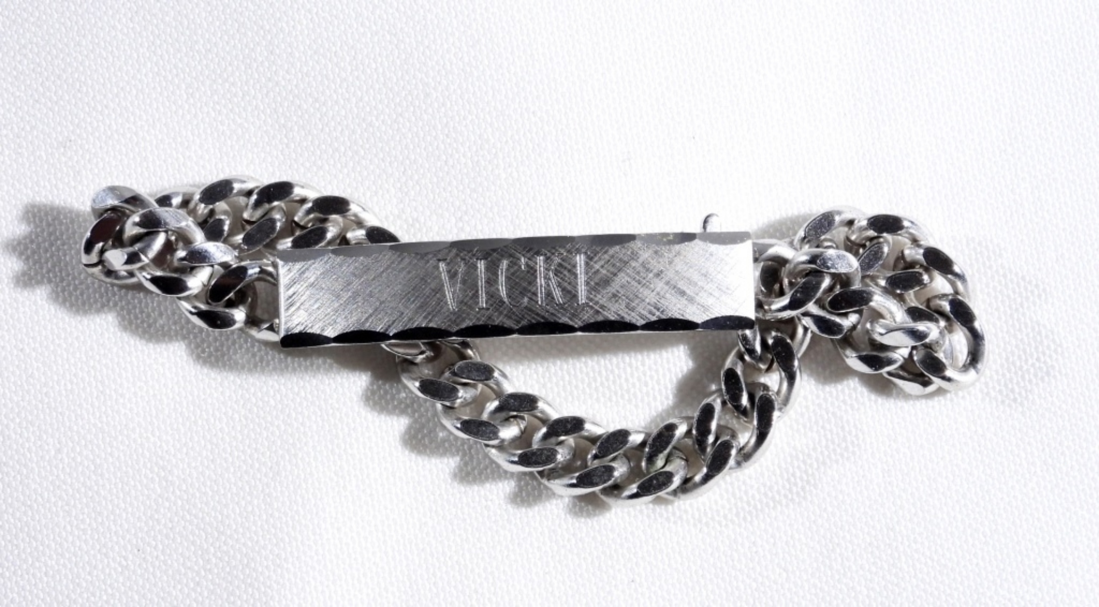 5 Silver-tone bracelets and one gold-tone bracelet. A bracelet has engraving on it on the front and back as shown in the pictures.