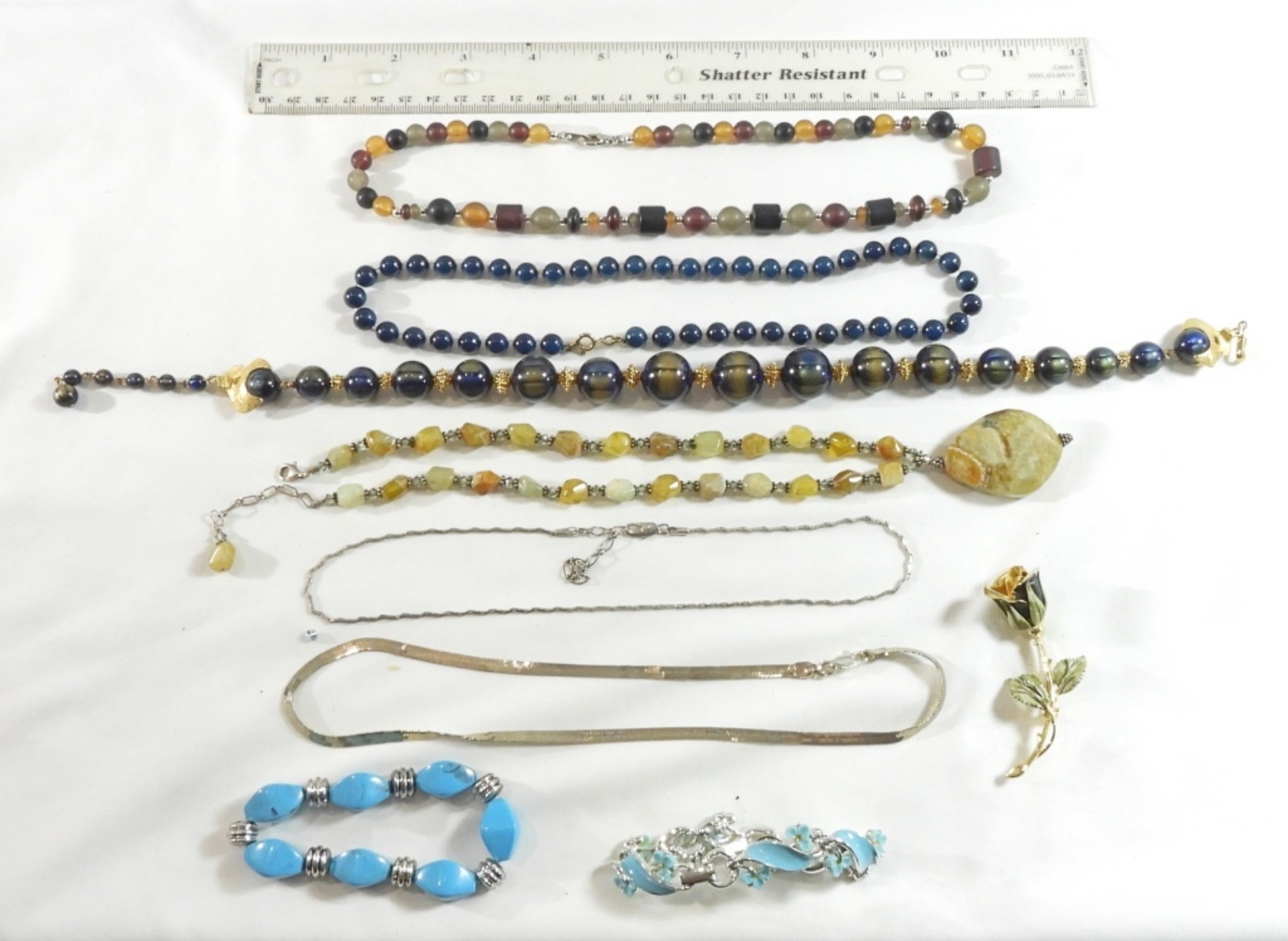 Mostly beaded, 2 chains, one black rose pin