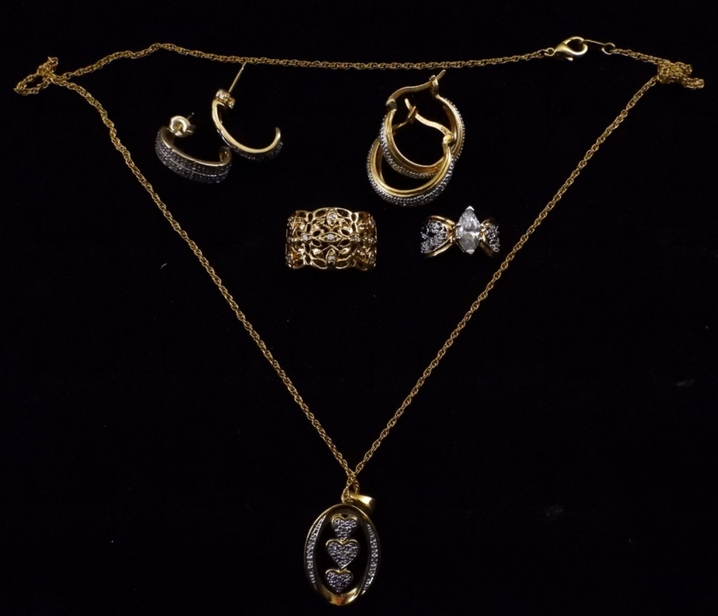 Gold-tone and clear rhinestones. Ring sizes are both 5.75.Post earrings