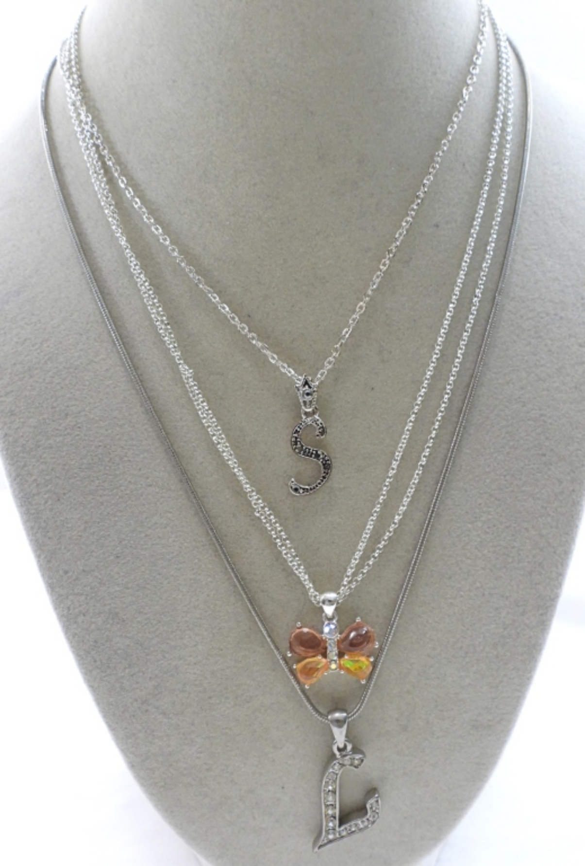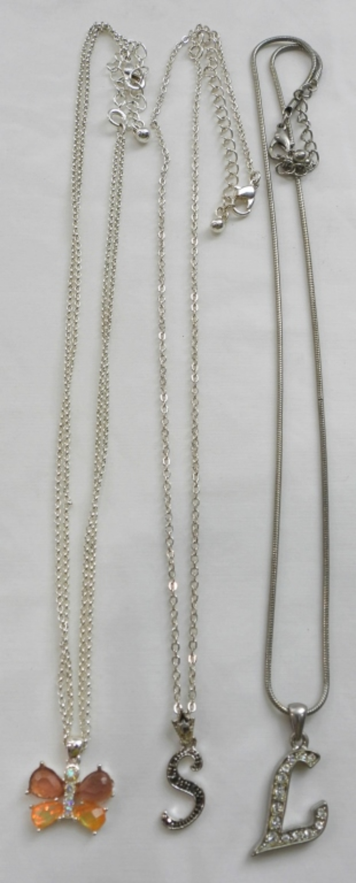 3 COLORFUL FAUX GEM STONE BEAUTIFUL SILVER TONE NECKLACES