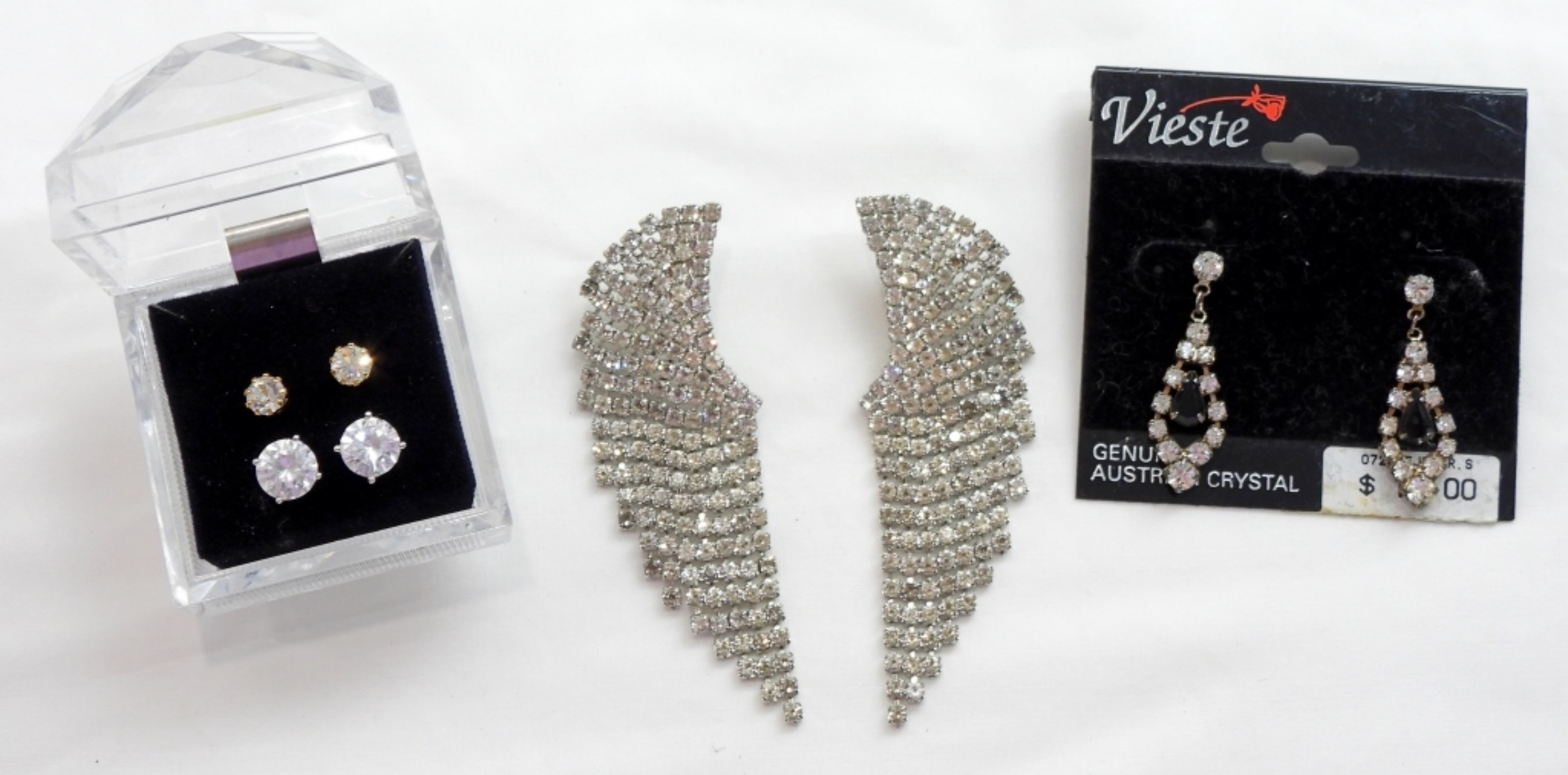 3 STUNNING SILVER TONE EARRING SETS, 2 DANGLY 1 LITTLE FAUX DIAMOND
