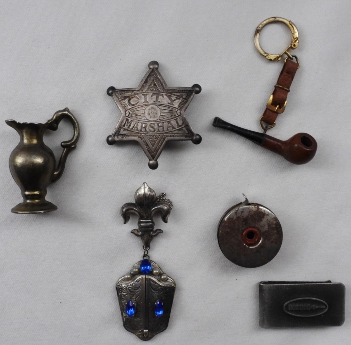 from an old tape measure, to a small wooden pipe key-chain made in Italy, to an antique brooch with a vintage photo, and more