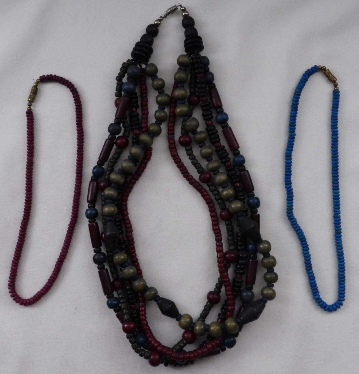 3 necklaces, 2 that are 15″ single strands, and 1 multistrand 20″