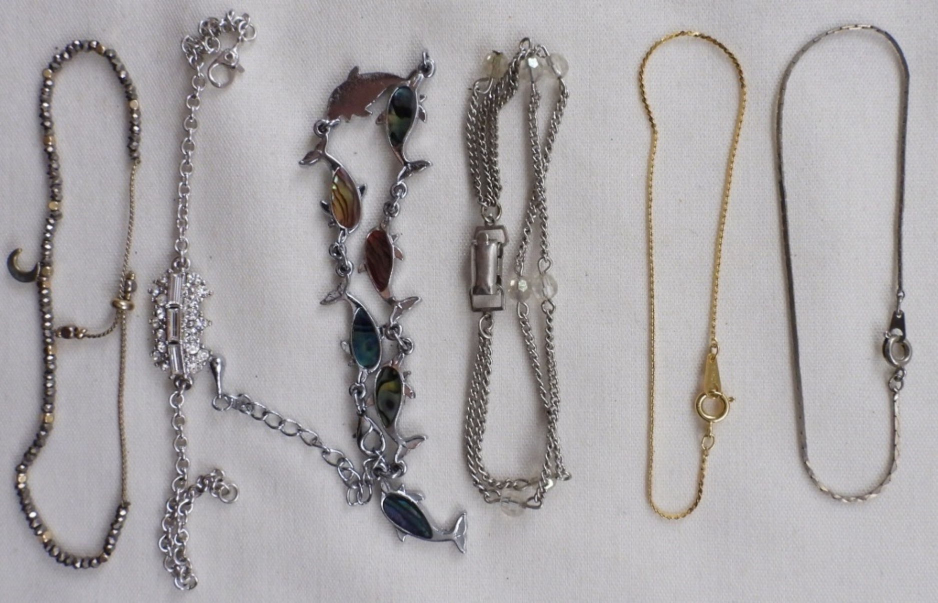 6 dainty women’s bracelets, silver and gold-tone, different sizes