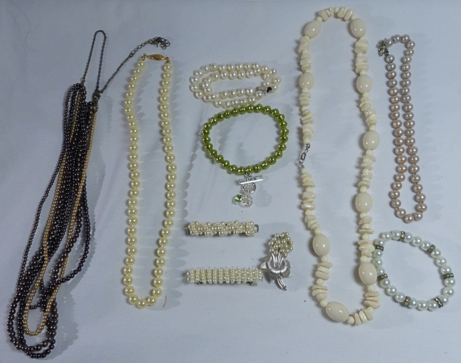 4 Necklaces, 3 Bracelets , 2 Hair clips, 1 Pin, Necklace lengths from 14″ to 26″
