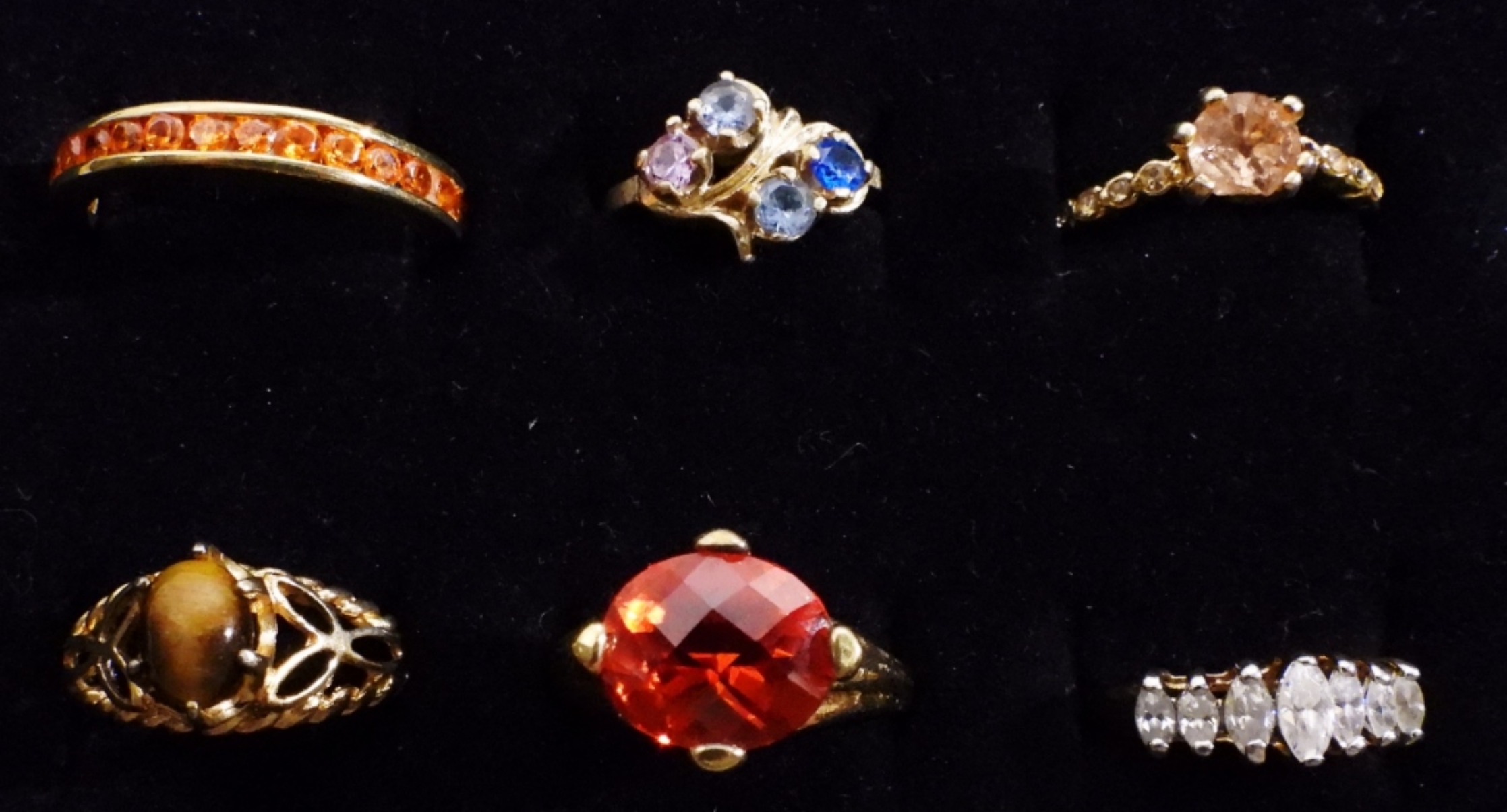 6 very pretty gold-tone rings with faux gems, different sizes