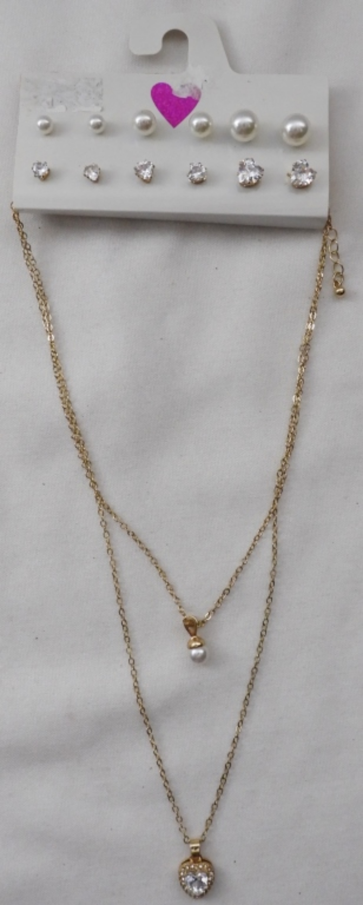 Gold-Tone Faux Pearls and Clear Rhinestones