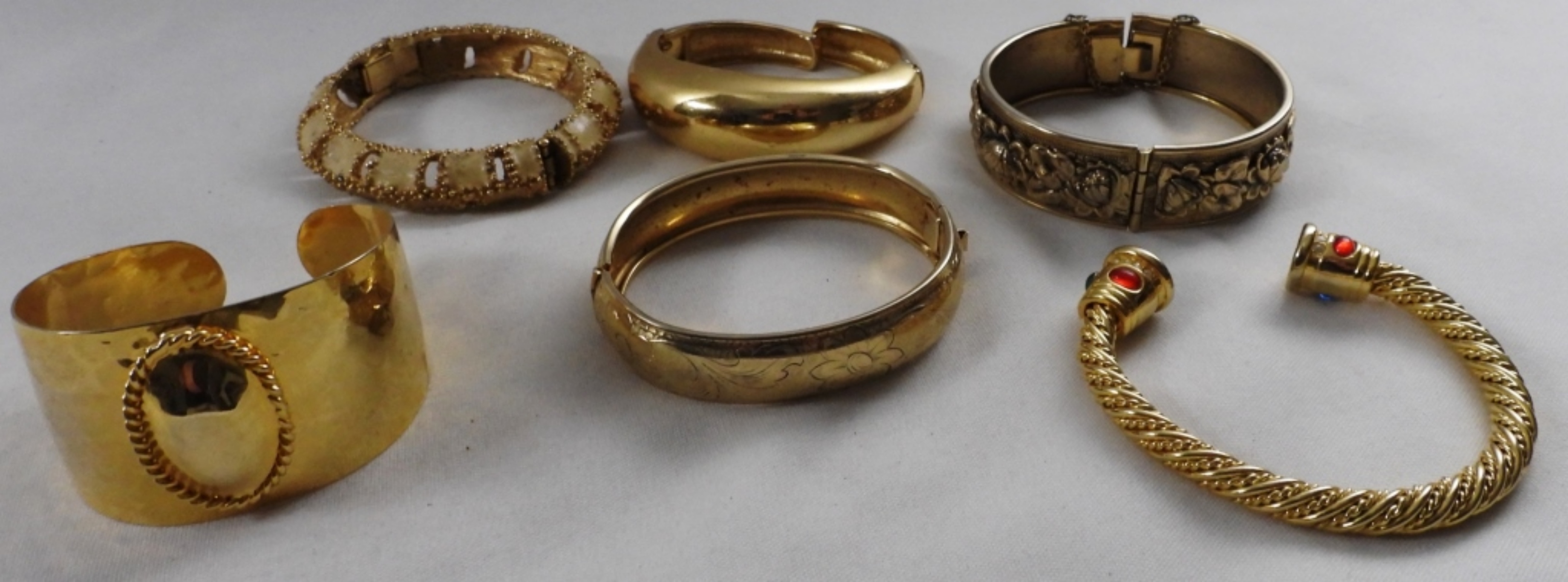 6 cuff bracelets, gold-toned, different sizes
