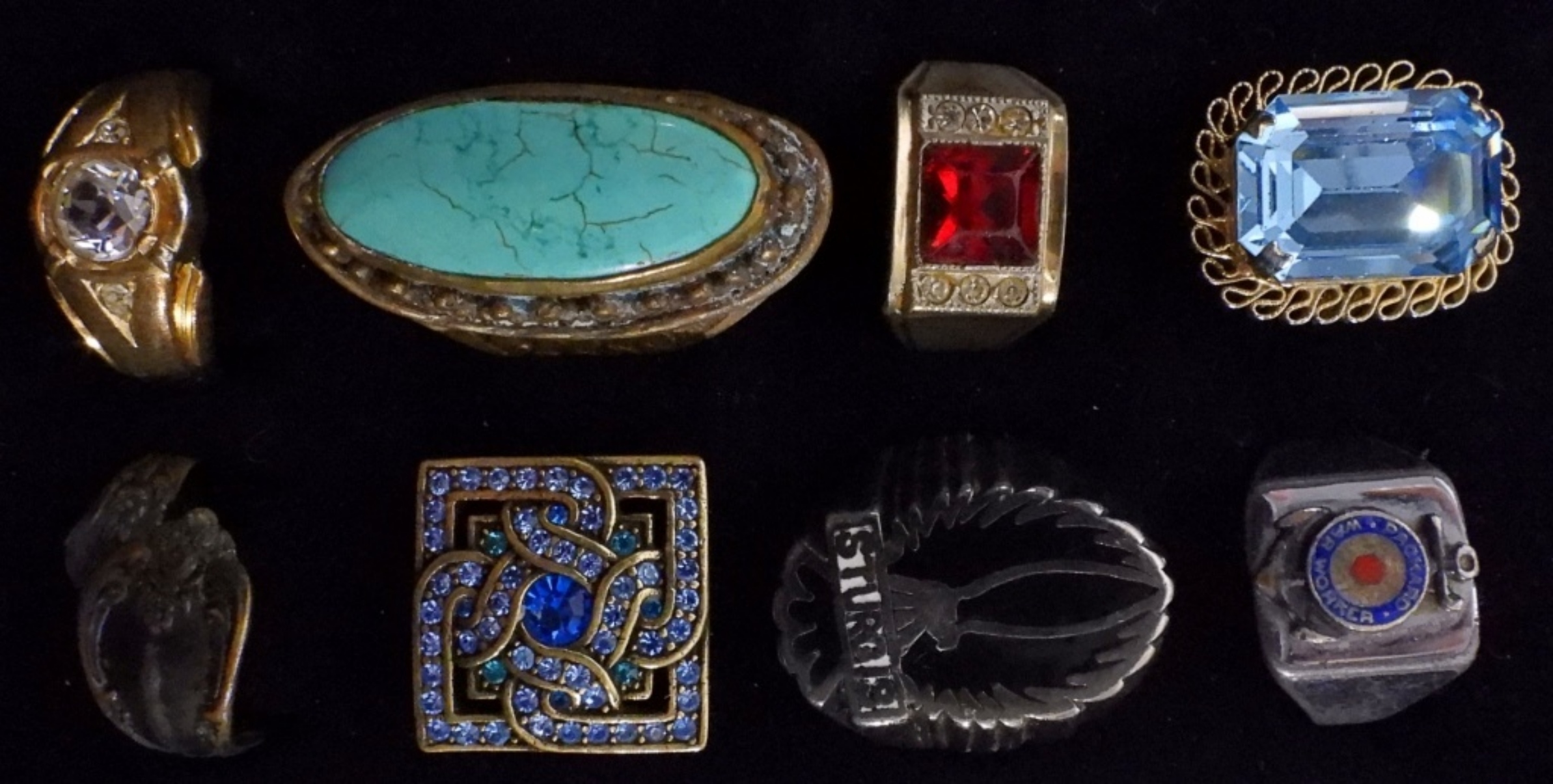 8 rings of different sizes and styles, mixed-tones