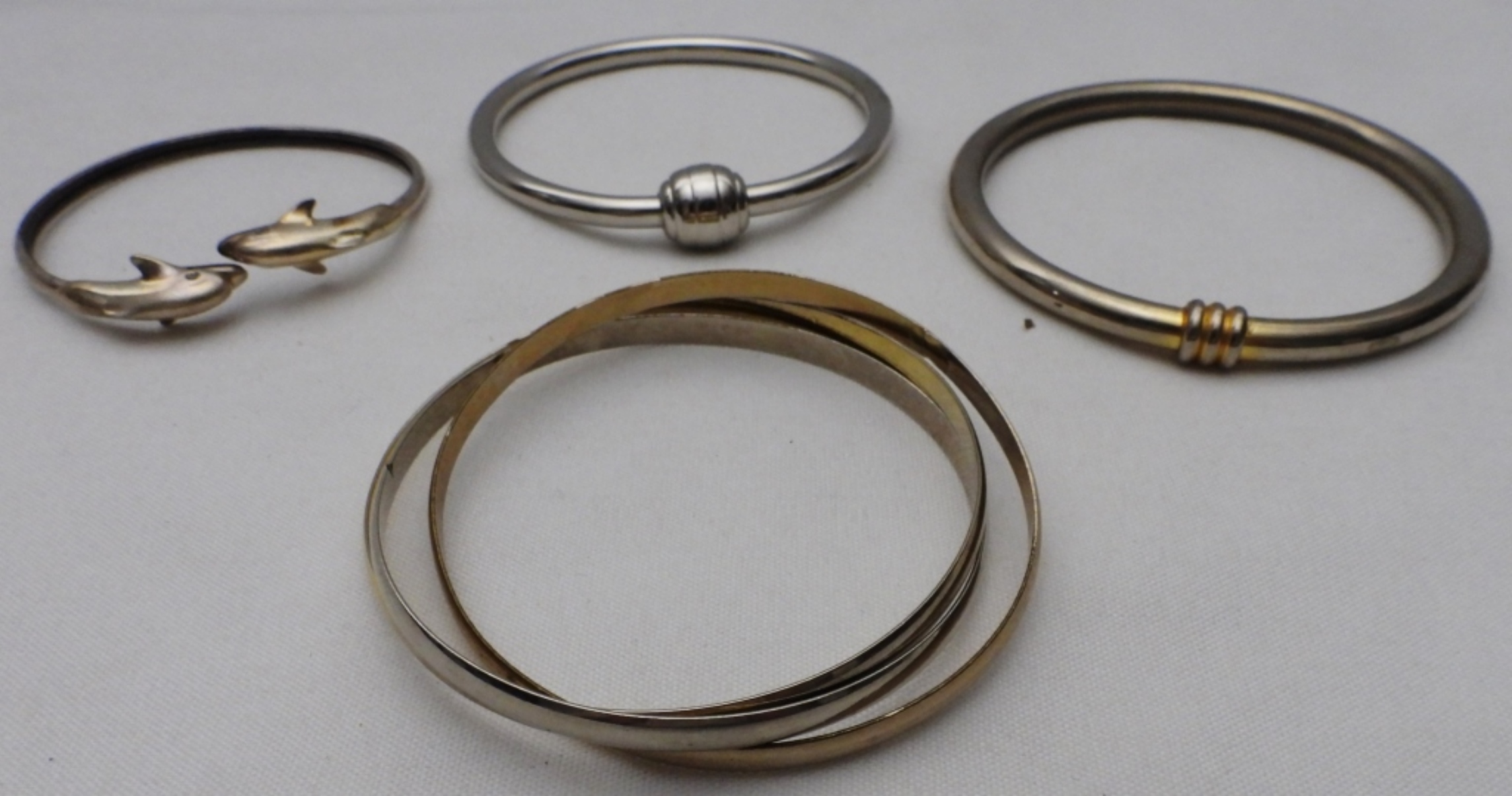 6 bangles, one of them has adorable dolphins, different sizes