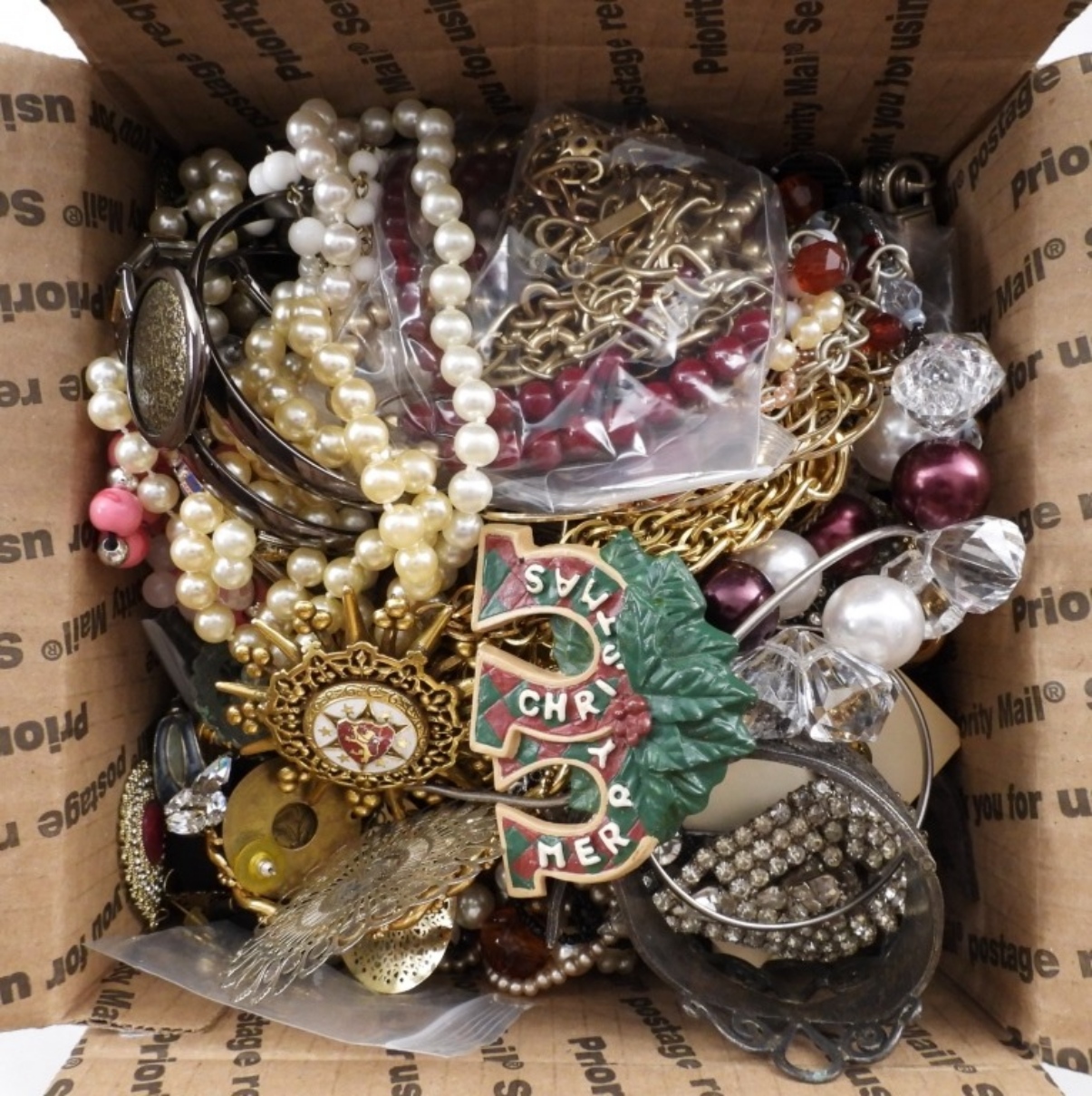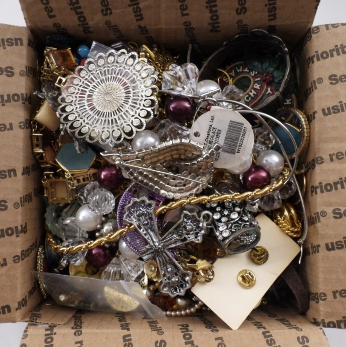 may be broken, tarnished, in need of repair, etc. some wearable, great for crafting! small-flat rate box