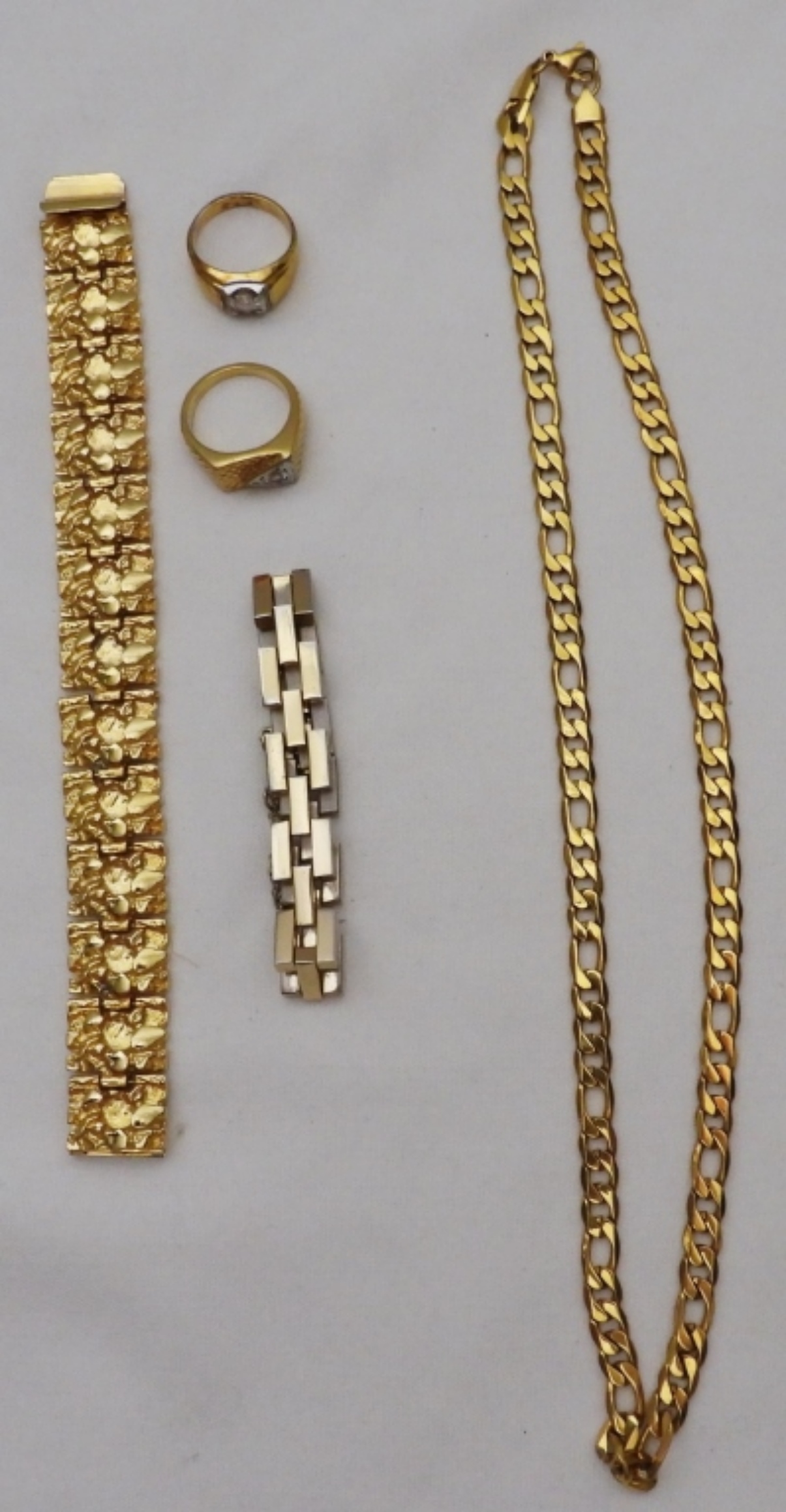 2 rings, 2 bracelets, and 1 necklace, all gold-tone