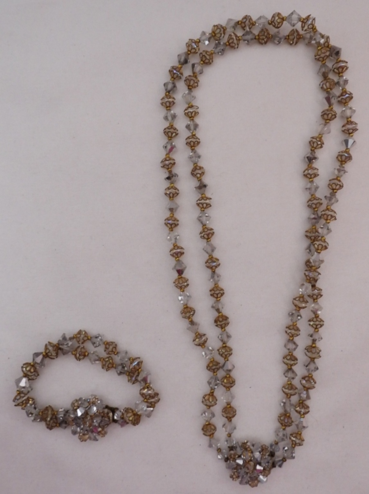 matching clear beaded bracelet and necklace 20″