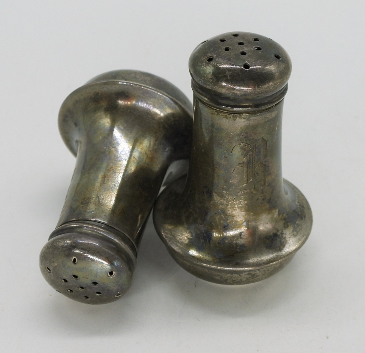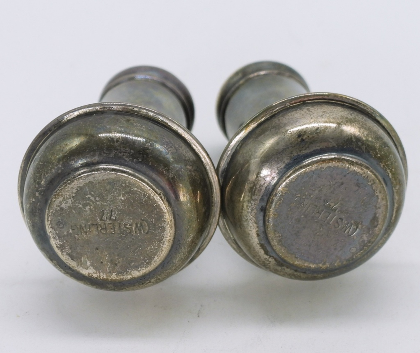 Pair of sterling salt & pepper shaker. 2″ tall. (13.9 dwt)