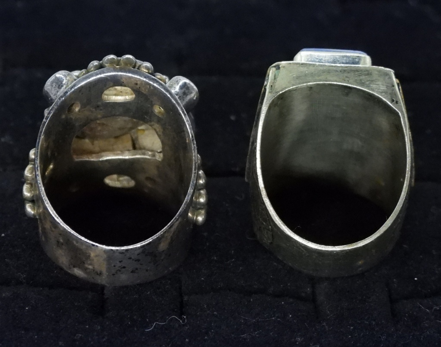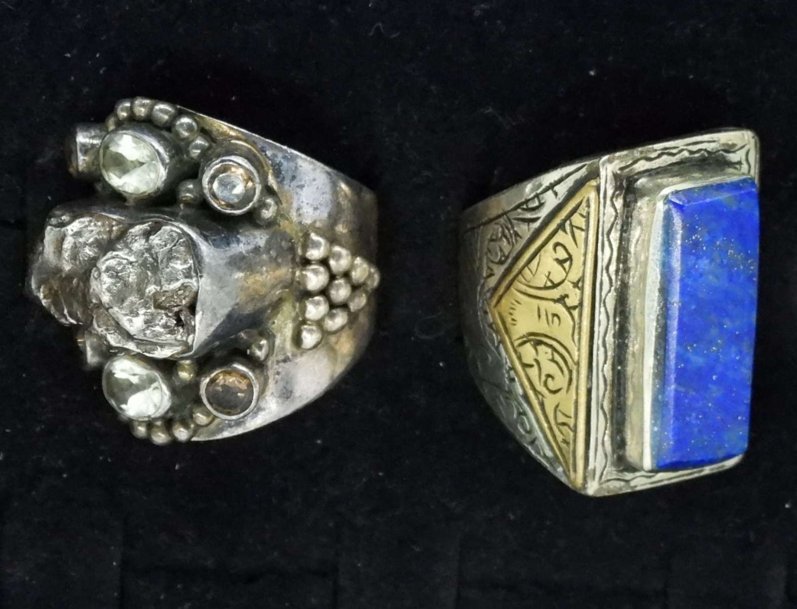 Lapis Lazuli sterling ring with gold tone accents, size 8.5/9. Silver nugget ring with smokey quartz, size 9. (30 dwt)