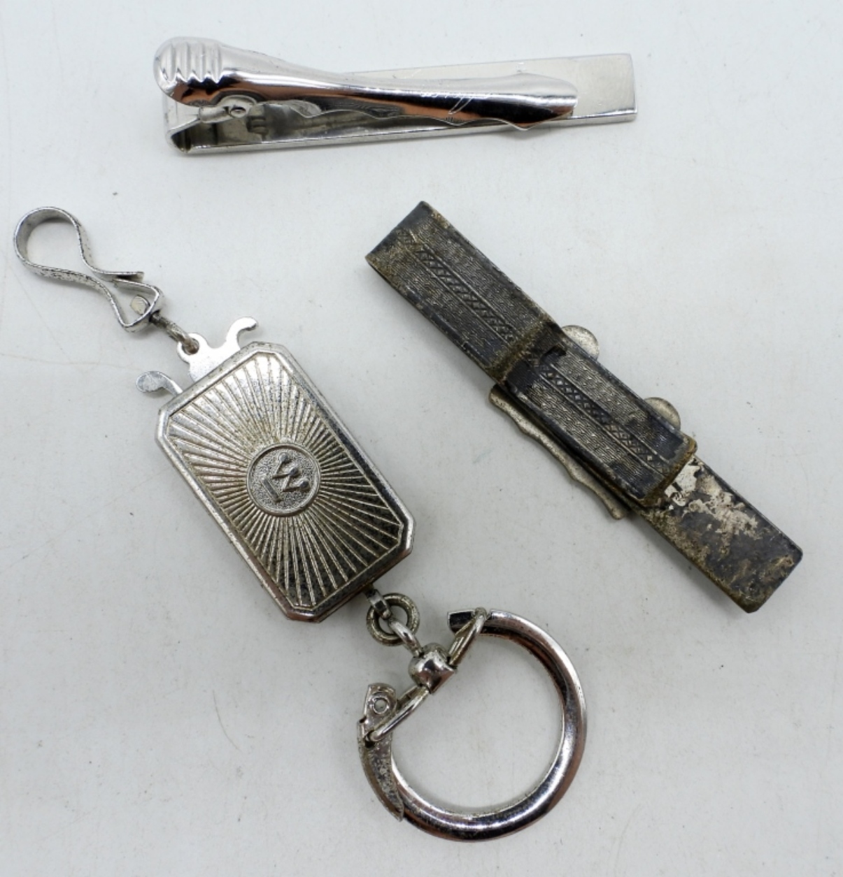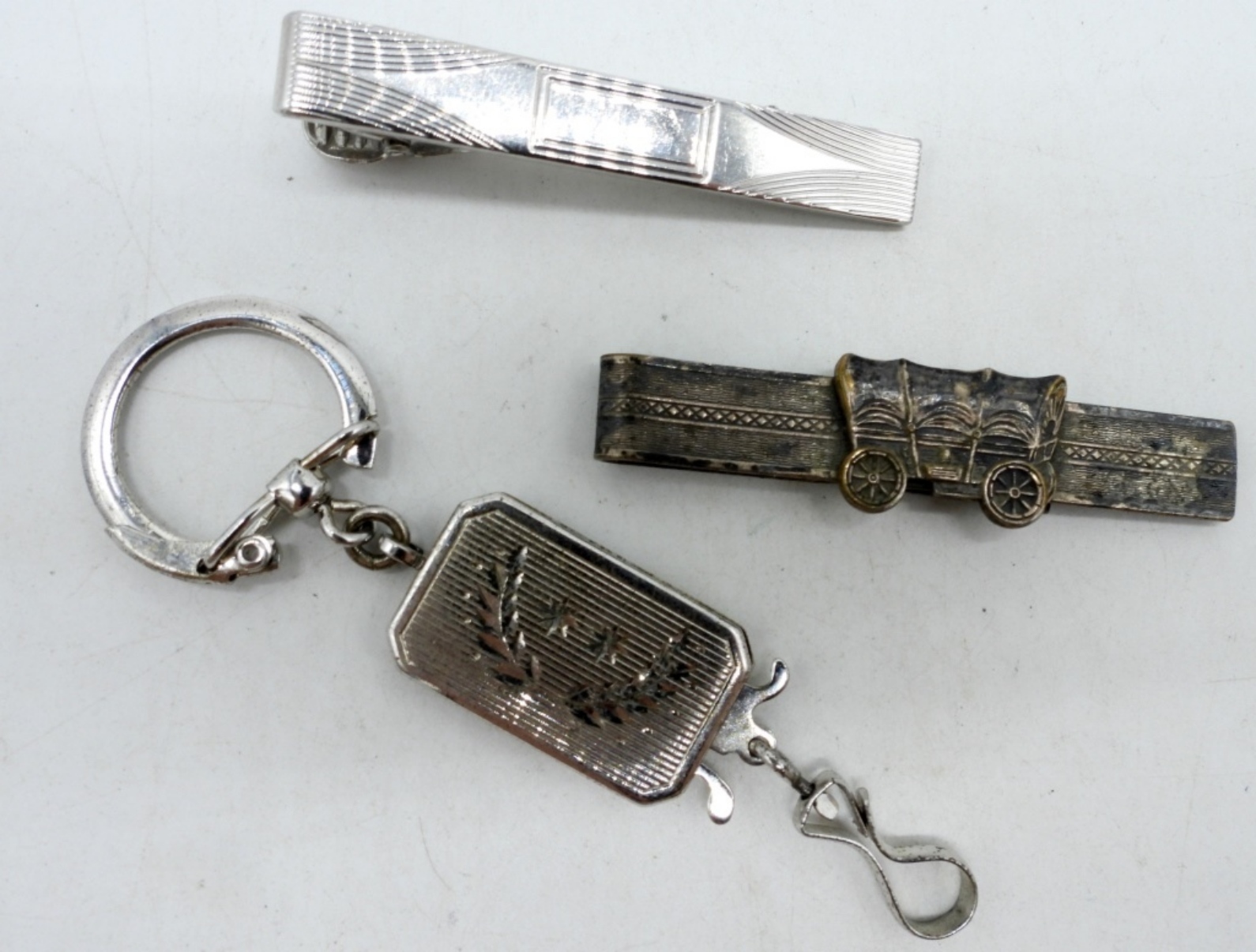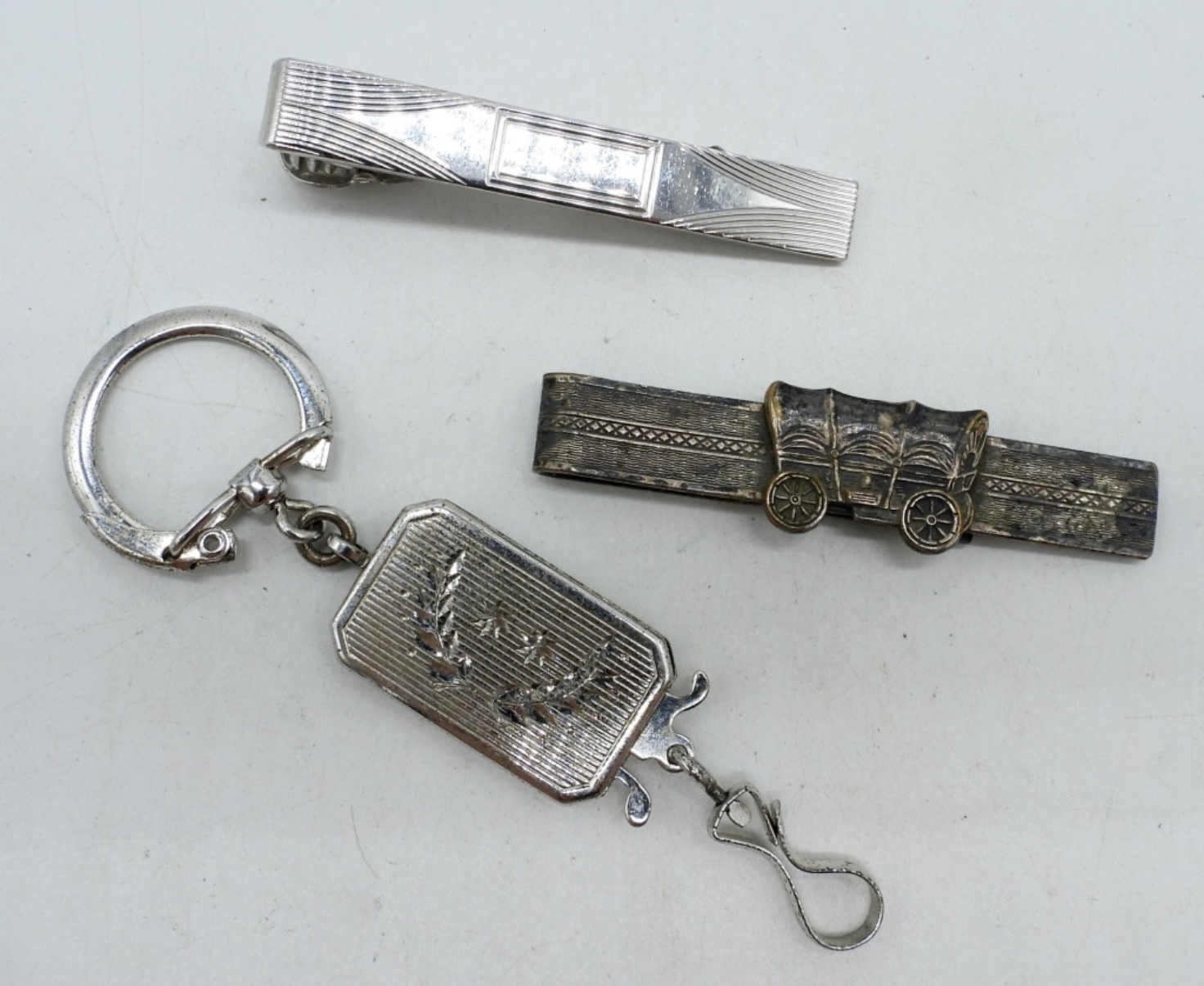 Vintage sterling tie clips and keychain (24.5 DWT)