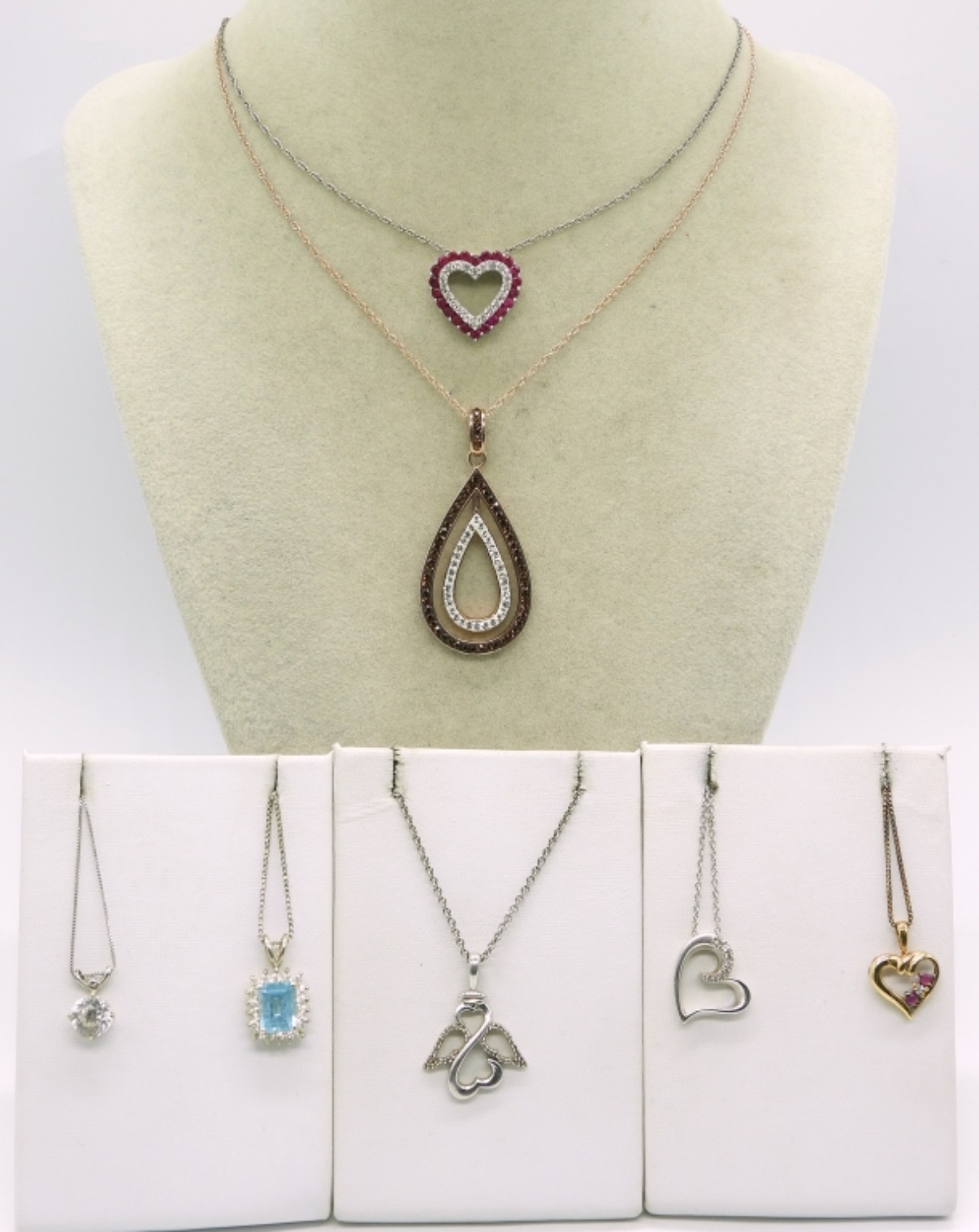 Seven sterling necklaces, multi tones. 18″ – 20″ sterling chains. (18.1 dwt)